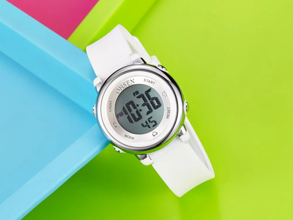 Детские спортивные часы OHSEN, водонепроницаемость 50 м, белые силиконовые электронные наручные часы, секундомер, детские цифровые светодиодные часы для мальчиков и девочек