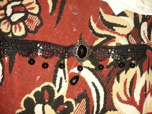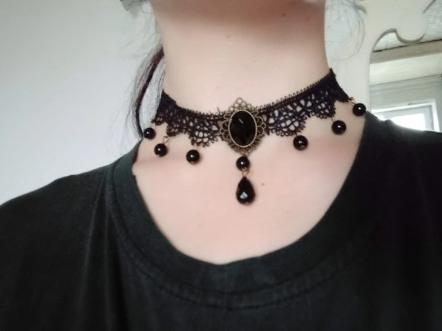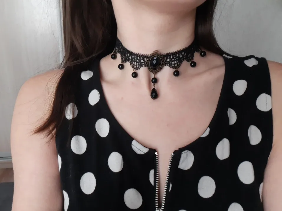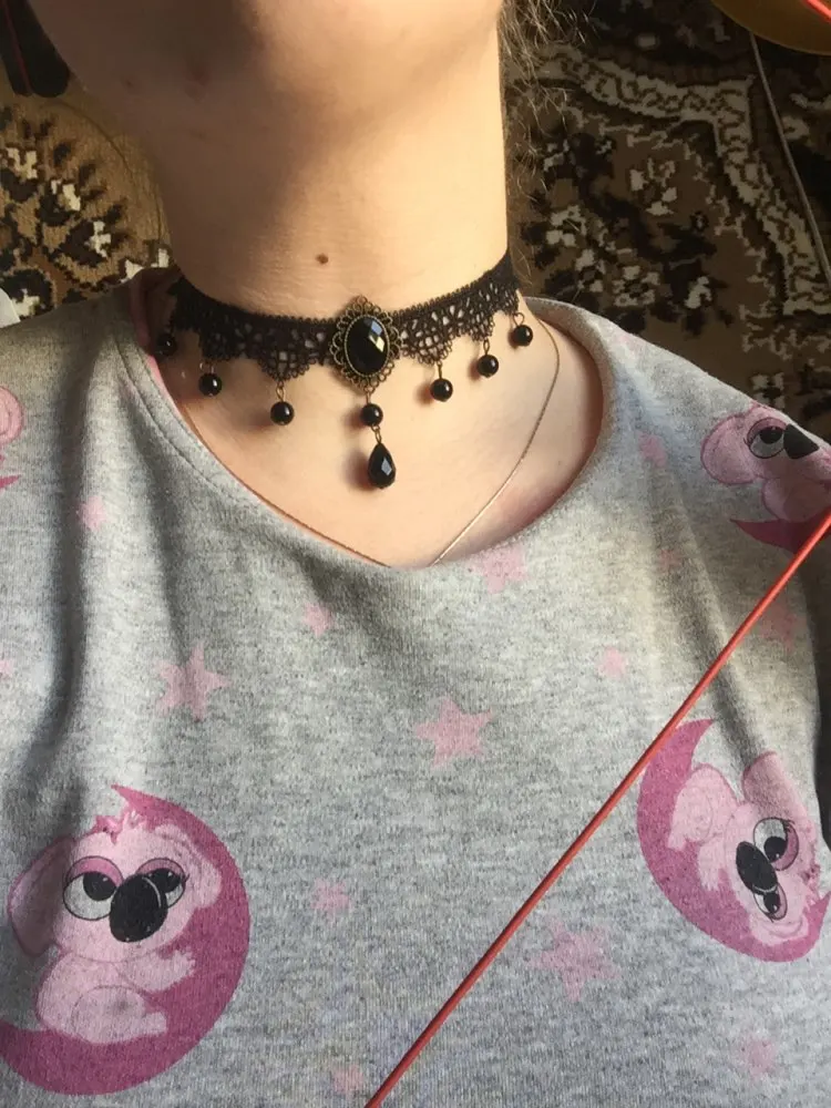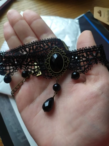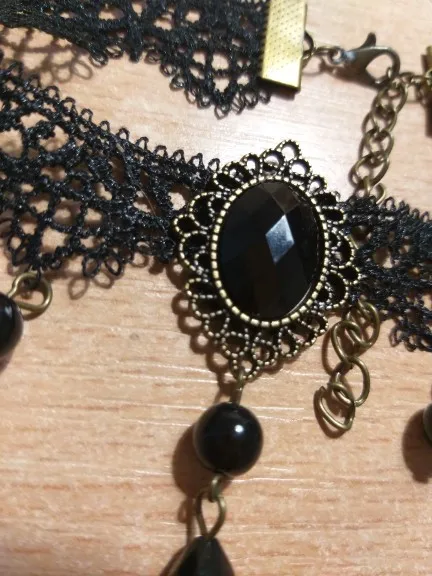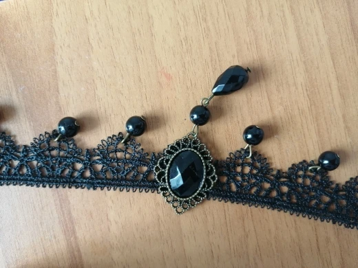 Отличный чокер. Кружева без дефектов (аккуратные, нитки не торчат). Крепление надежное. Центральный элемент приклейке надежно, отпасть не должен, но если это и случится, то легко восстановить все. На мою шею (30 см обхват) немного великоват, но это не сильная проблема. С продавцом не общалось, пришёл товар за месяц (в последний из возможных дней). Советую любителям старины или тем, кто искал именно это.
