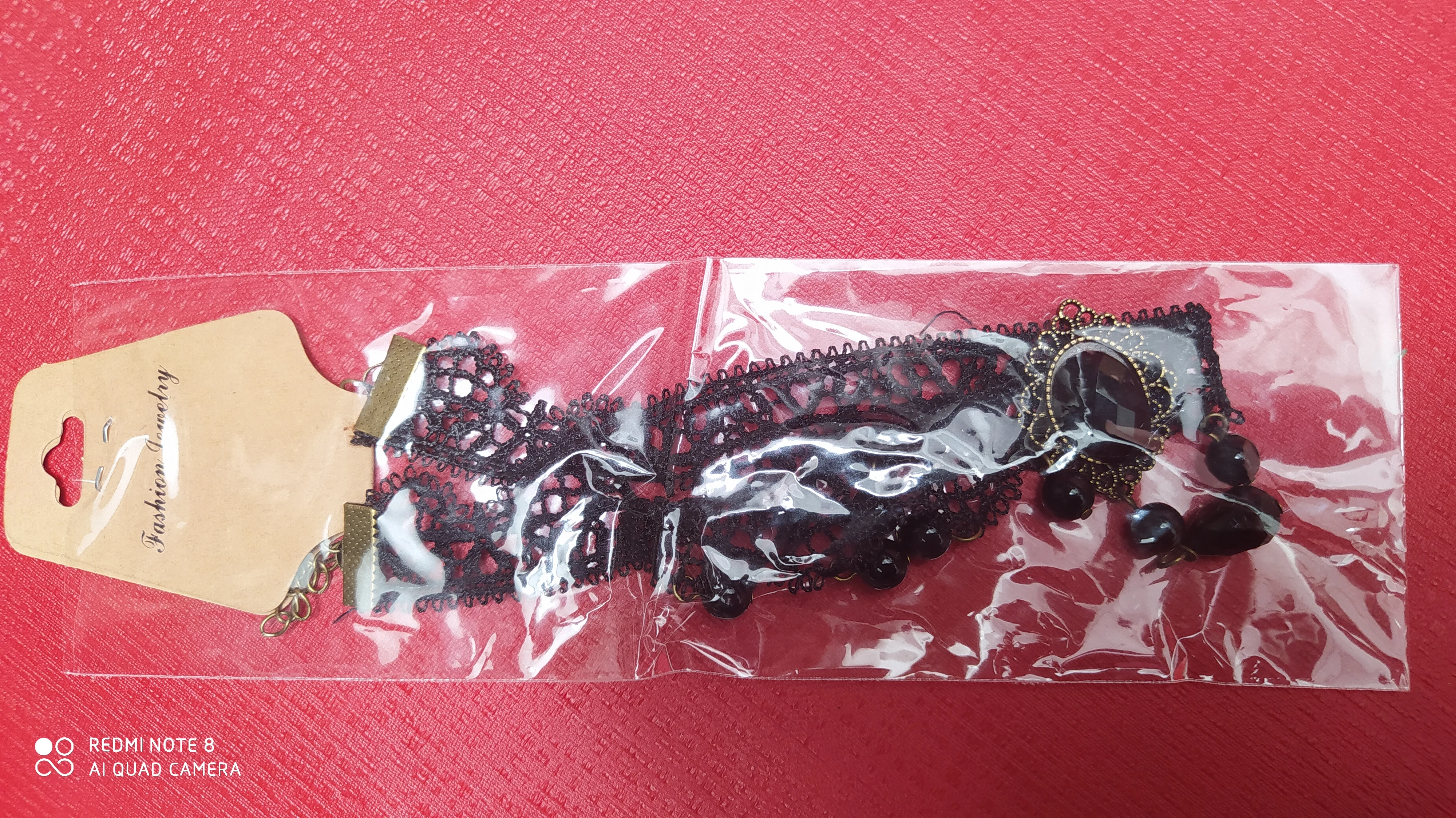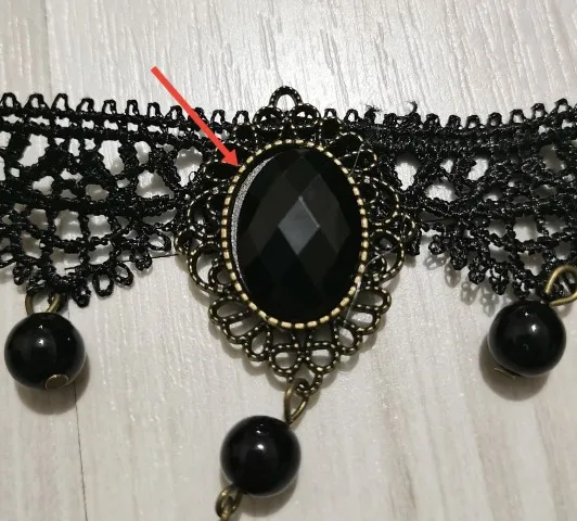 Камень из амулета был отдельно, не знаю чья это проблема. Но мне придётся приклеивать его самой. Это очень плохо. А сам чокер очень красивый. Соответствует описанию на 100%