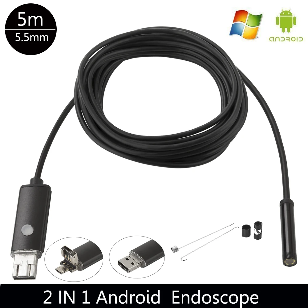 JCWHCAM 5,5 мм Android USB эндоскоп камера 5 м гибкий Змеиный трубка осмотр смартфон, телефон на Android USB бороскоп камера