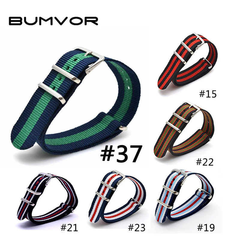 BUMVOR армейские военные НАТО нейлоновые часы 22 мм серый черный оранжевый тканевый ремешок для часов ремешок с пряжкой аксессуары для ремешка