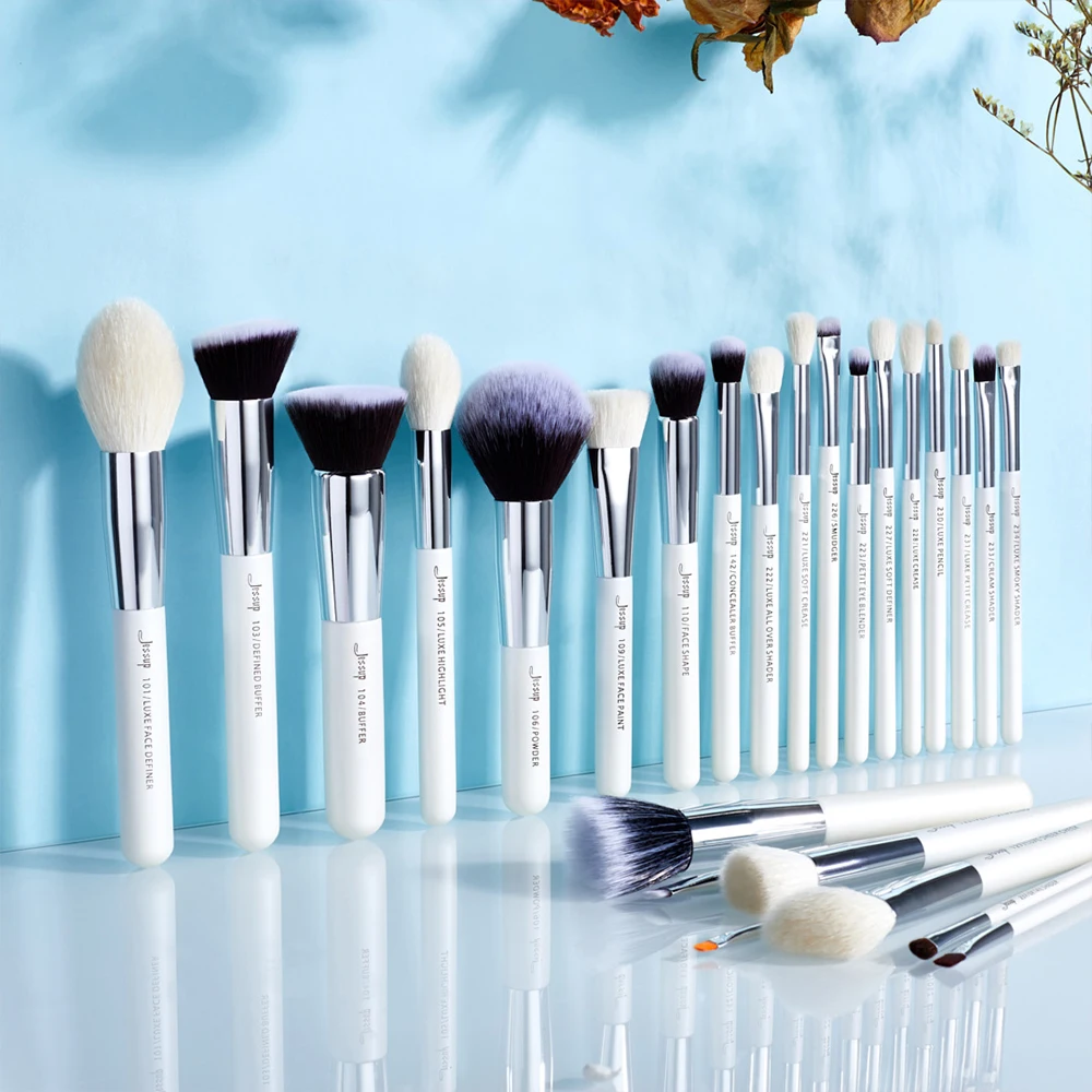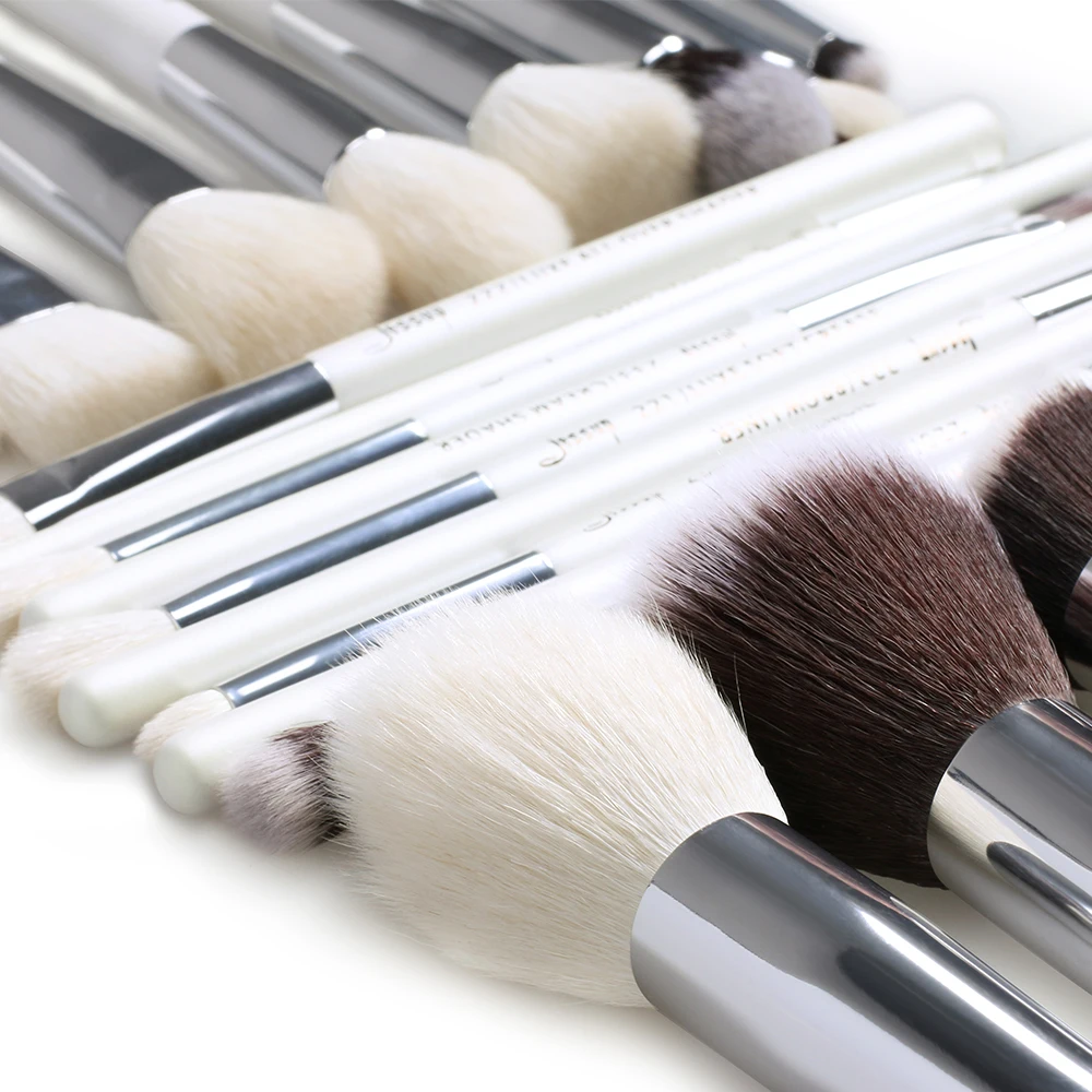 Набор кистей Jessup, жемчужно-белыеСеребристые Профессиональные кисти для макияжа, наборы кистей для макияжа, косметический инструмент, пудра, румяна