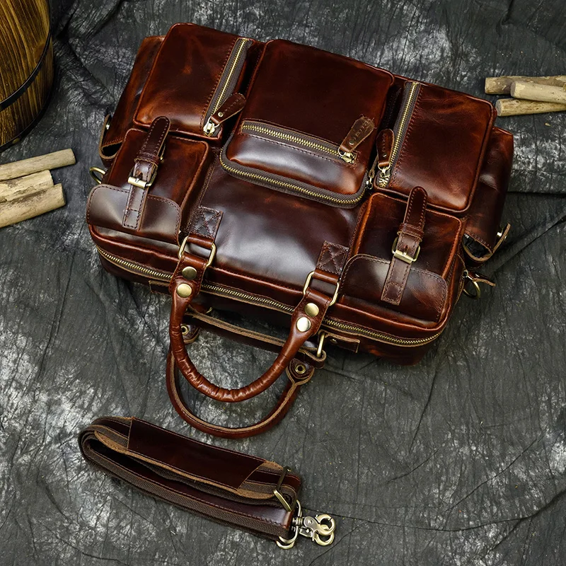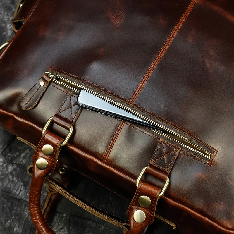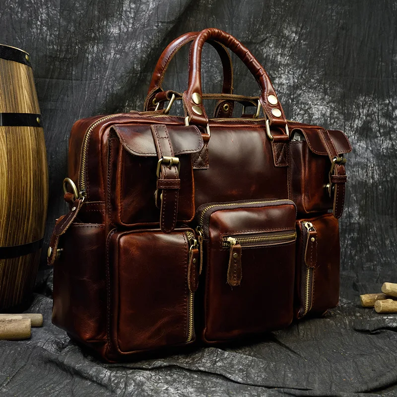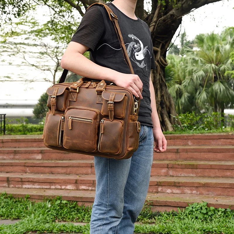 Luufan Мужской винтажный портфель Crazy Horse из натуральной кожи 15,6 дюйма, деловая сумка из коровьей кожи, сумка-мессенджер для ноутбука, большая рабочая сумка