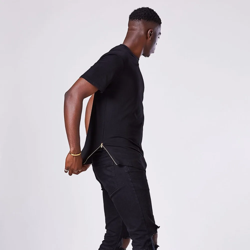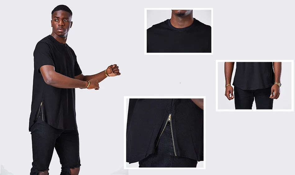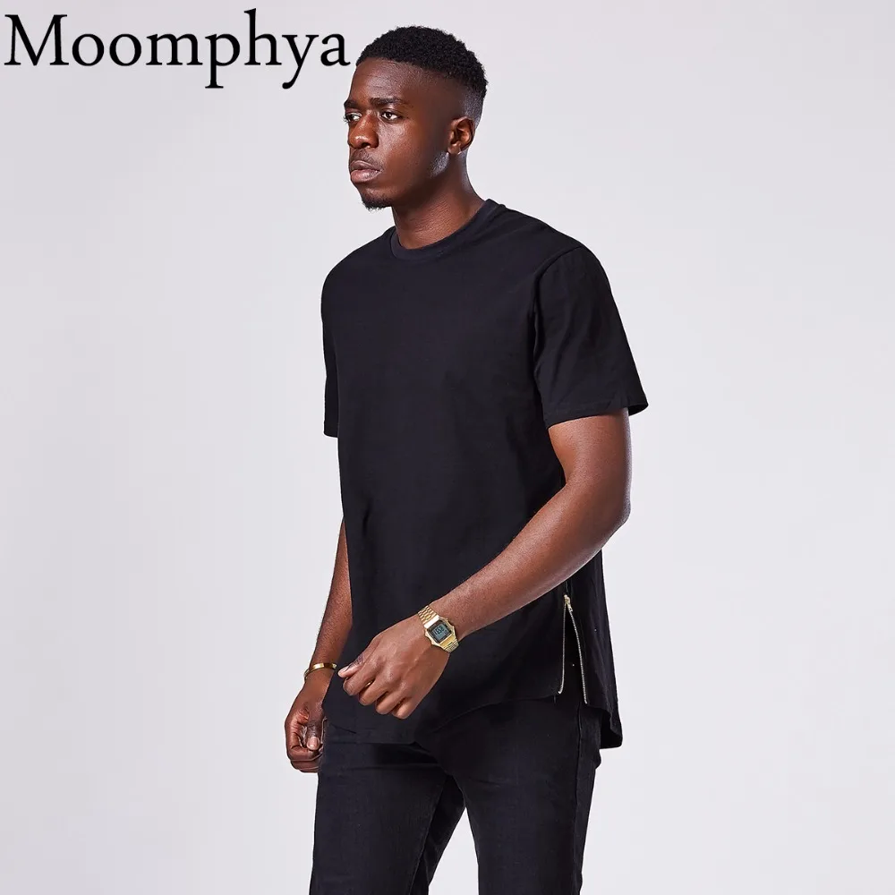 Мужская футболка с коротким рукавом Moomphya, уличная футболка из 100% хлопка с удлиненным подолом и боковой молнией, 2020