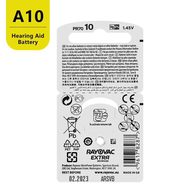 60 шт. Бесплатная доставка, Цинковый Аккумулятор для слухового аппарата Air 10A10PR536. Батарейки для слухового аппарата Rayovac с повышенной производительностью 10 А