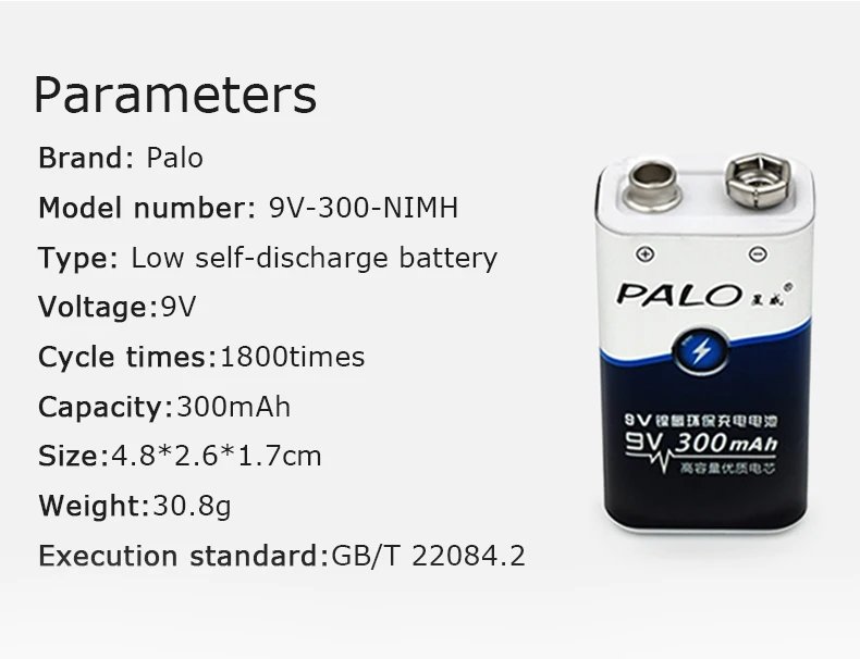 Аккумуляторы PALO, 9 В, 6F22, 300 мА ч, Ni-MH, NiMH, 9 В, с зарядным устройством для никель-металлогидридных, литий-ионных аккумуляторов 6F22 9 в