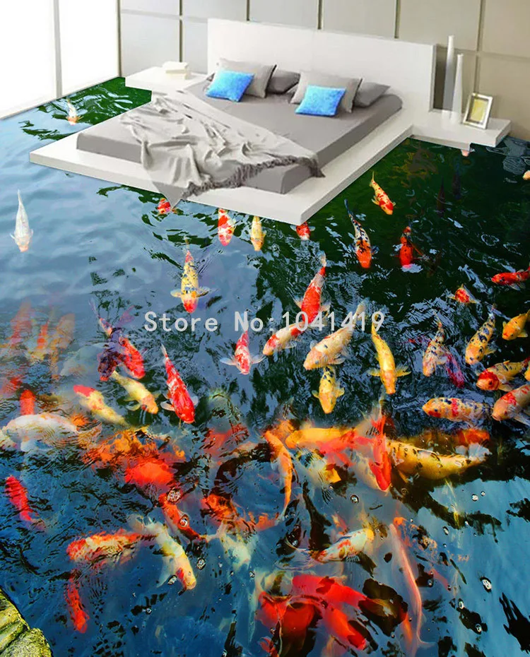 ПВХ самоклеющиеся водостойкие 3D фрески для пола, пруд с золотой рыбкой, фотообои, наклейки для ванной, кухни, домашнего декора