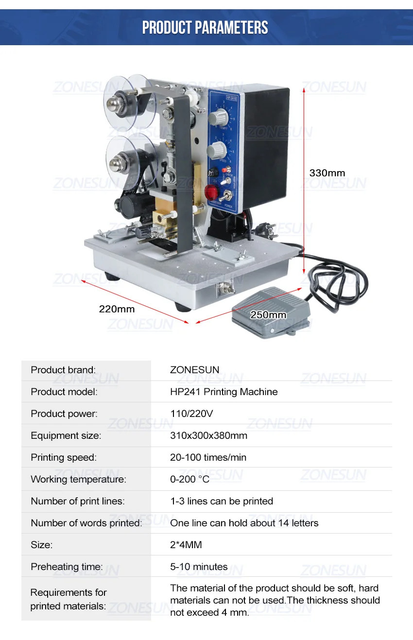 ZONESUN HP-241B лента принтера горячая лента машина для штамповки Дата производства номер Срок годности Алюминий Пластик Еда упаковка