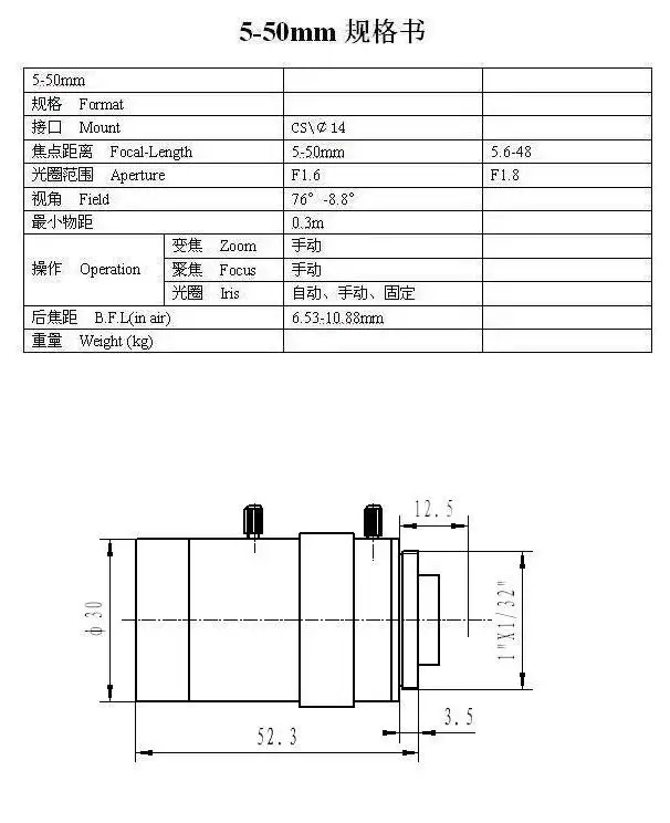 Камера видеонаблюдения с переменным фокусным расстоянием 5-50 мм, объектив с ручным зумом CS