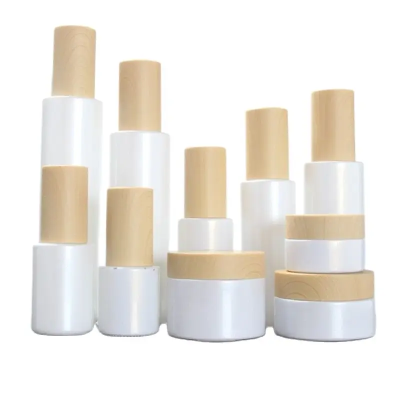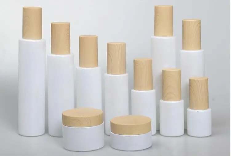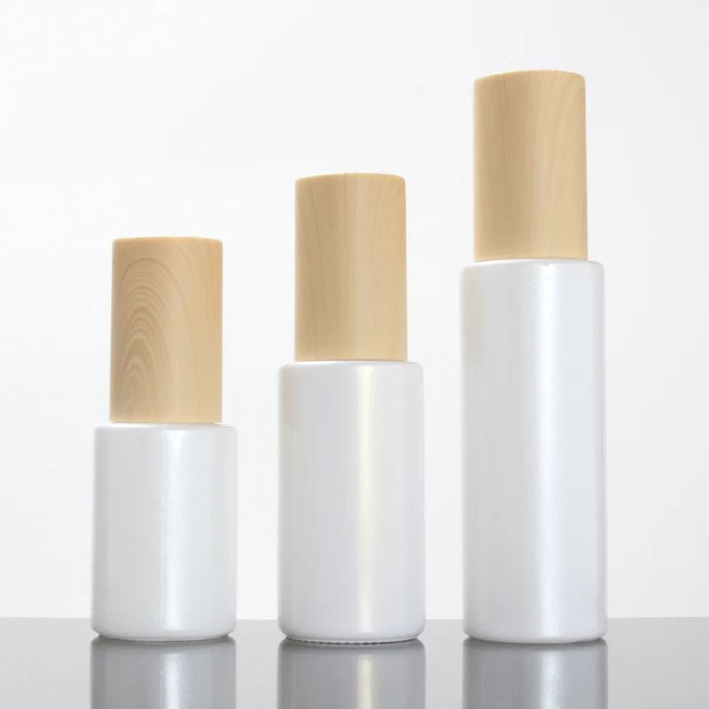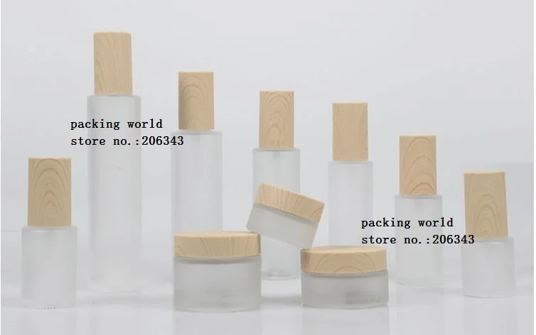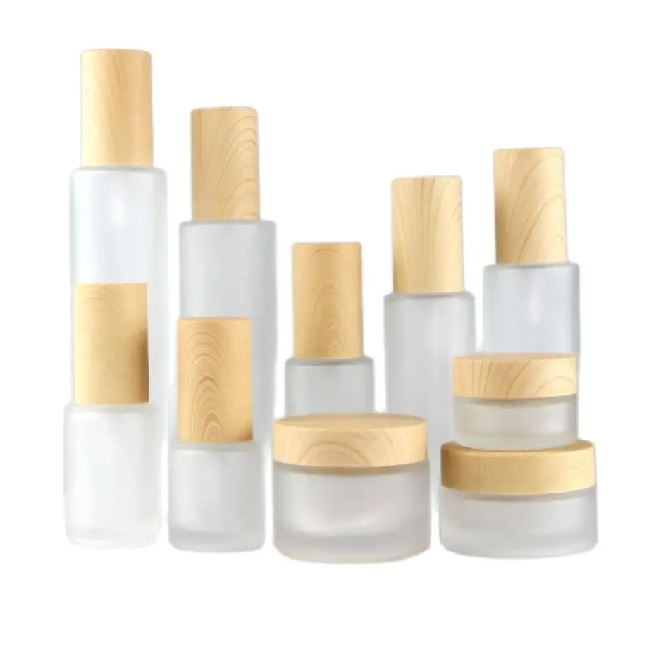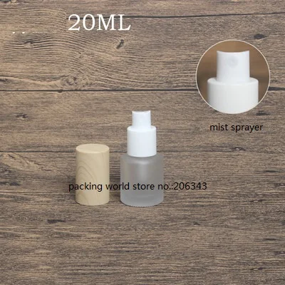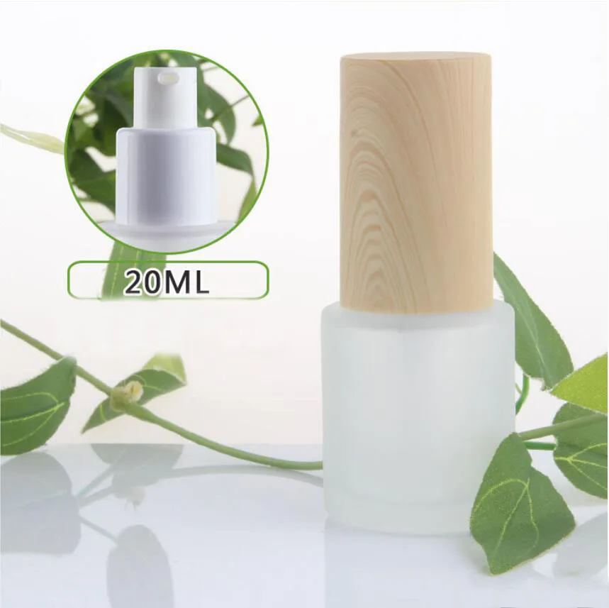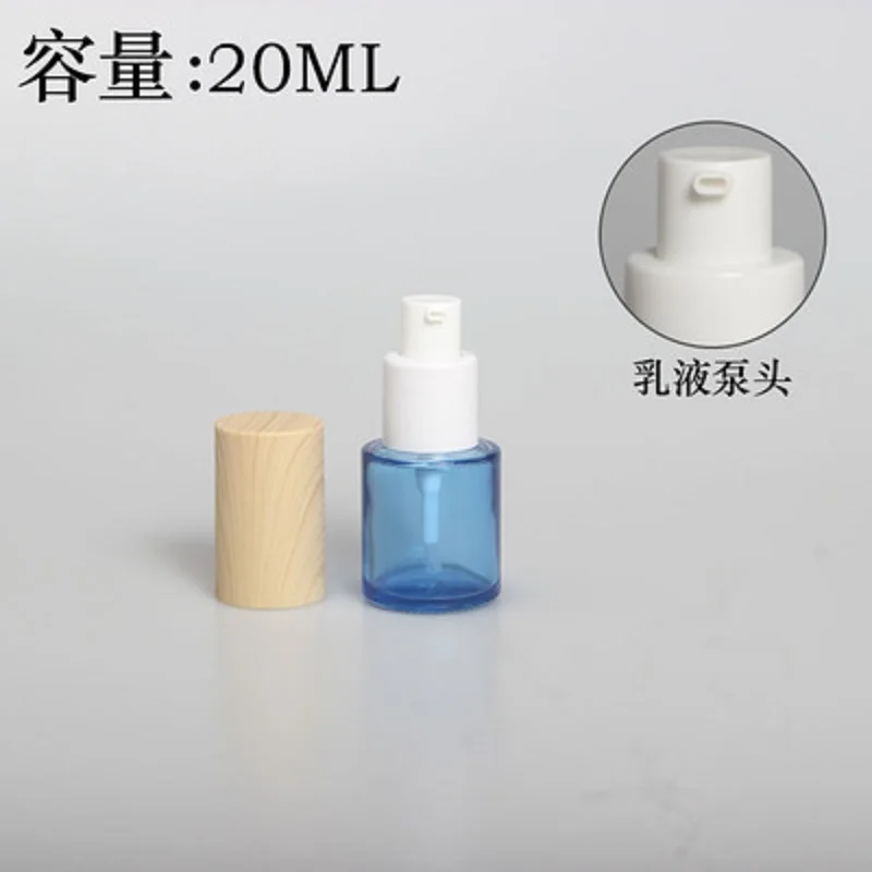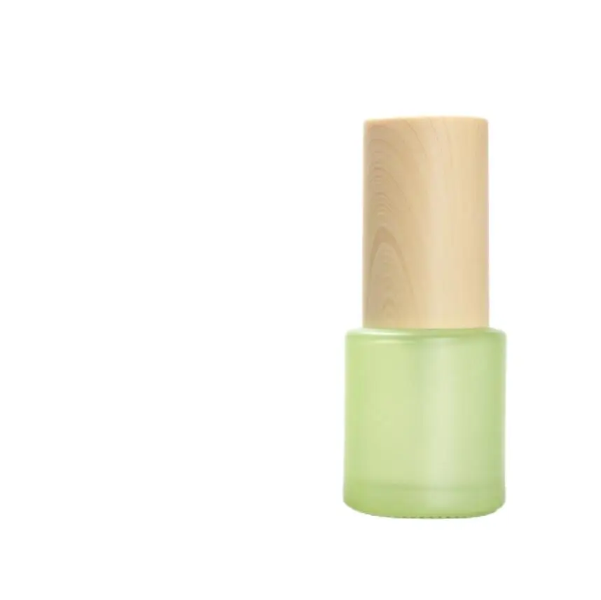 Матоваязеленаясиняя стеклянная бутылка 20 мл, деревянная крышка для сывороткилосьонаэмульсииосновы для ухода за кожей, косметическая упаковка