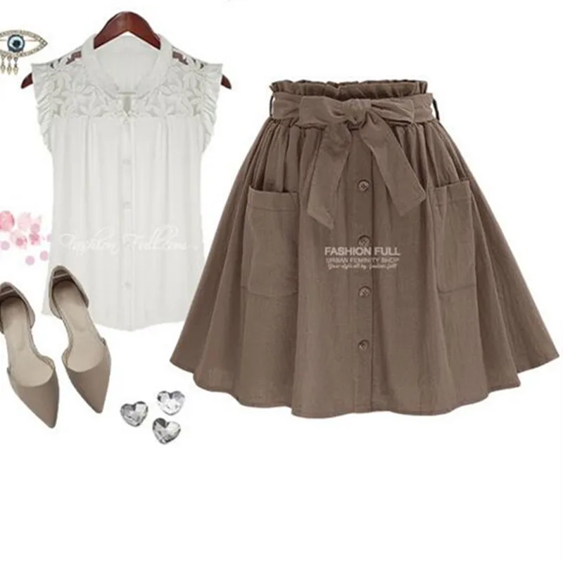 Женская винтажная юбка миди HziriP, однотонная юбка с высокой талией, карманами и бантом на поясе, летняя юбка болотного цвета в европейском стиле