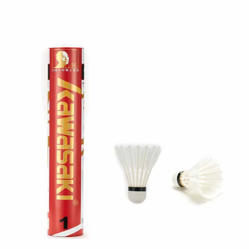Воланы Kawasaki Tournament с белыми гусиными перьями, профессиональные шарики для бадминтона, прочные, 76 77, 12 шт.