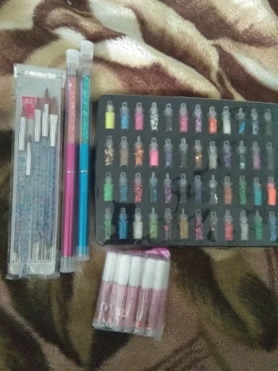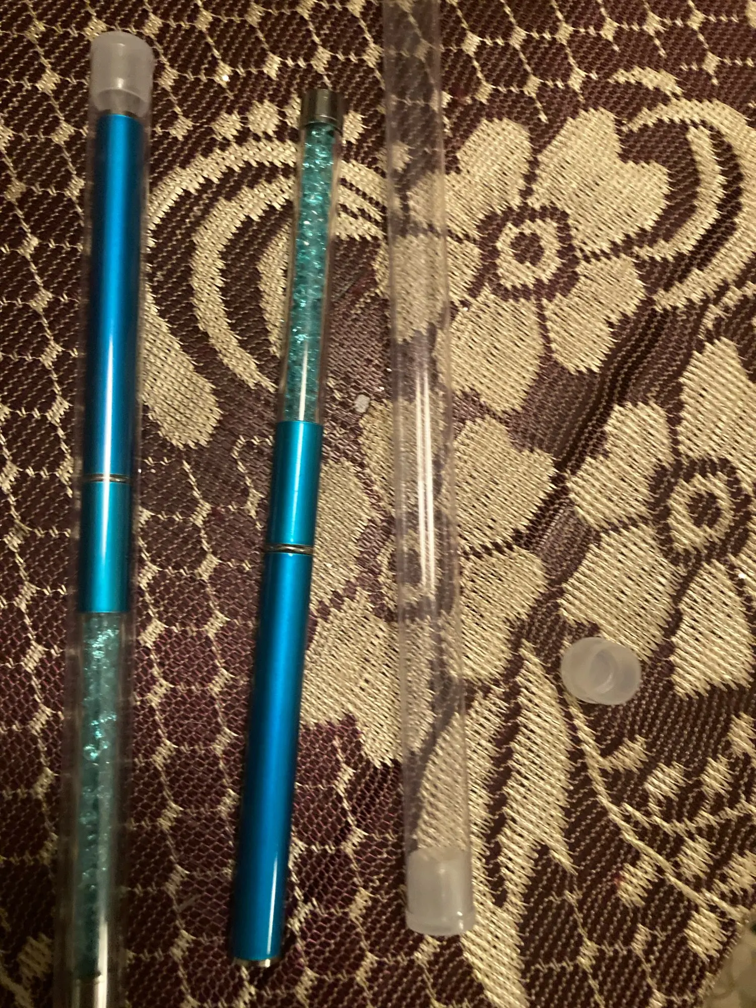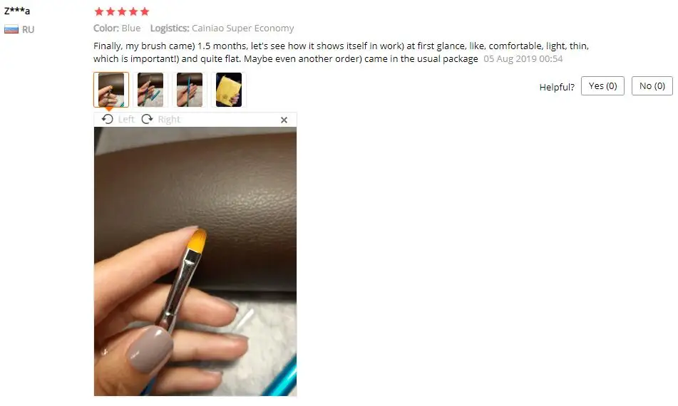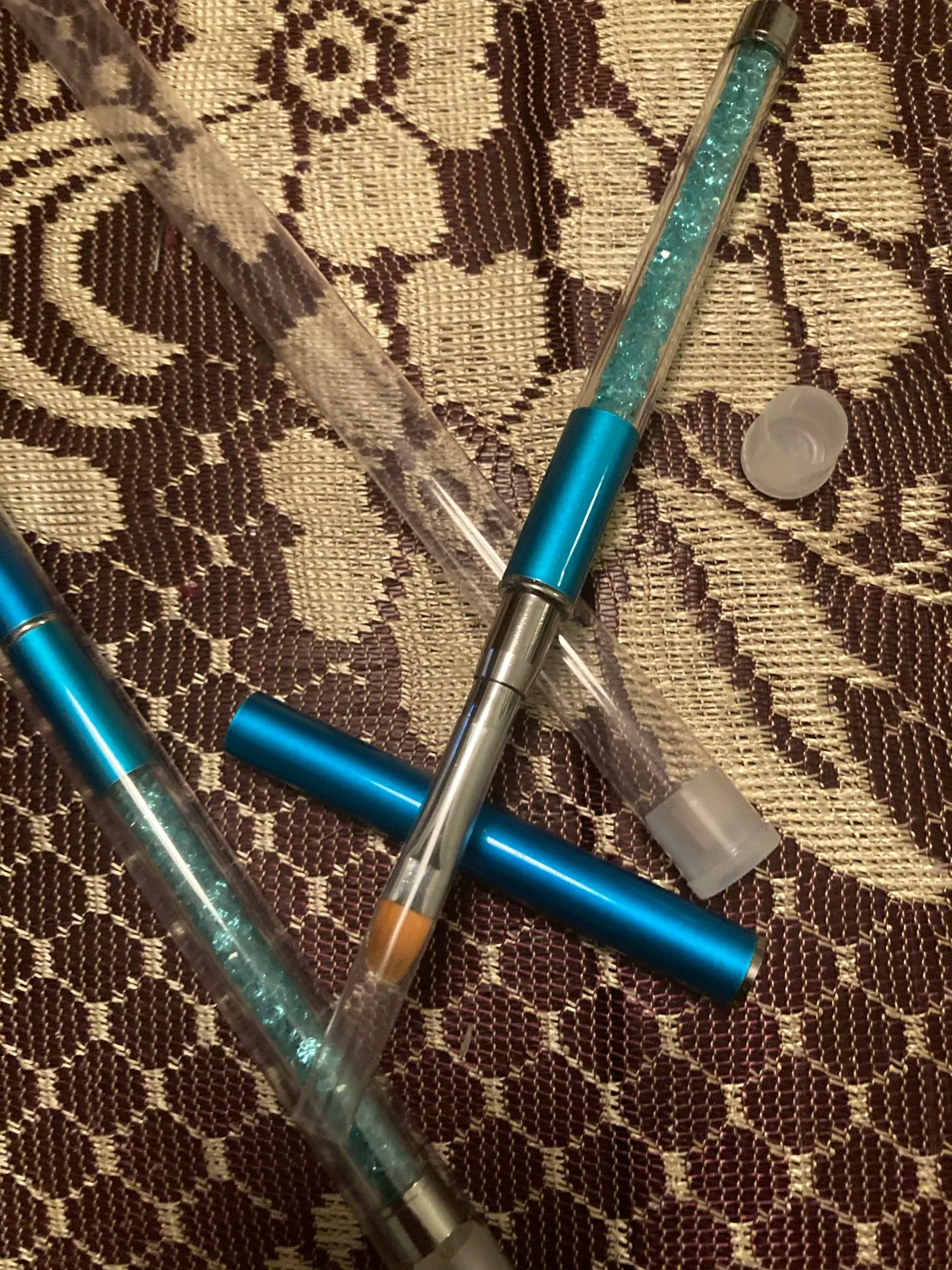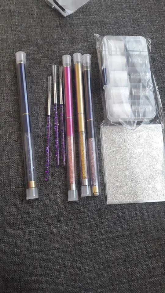 Кисти шли 1,5 месяца, упакованы хорошо, трэк не отслеживался. Сами кисти по качеству хорошие, ворс одинаковый, ничего не торчит. камешки блестят. Каждая кисть с колпаком и в дополнительном футляре.