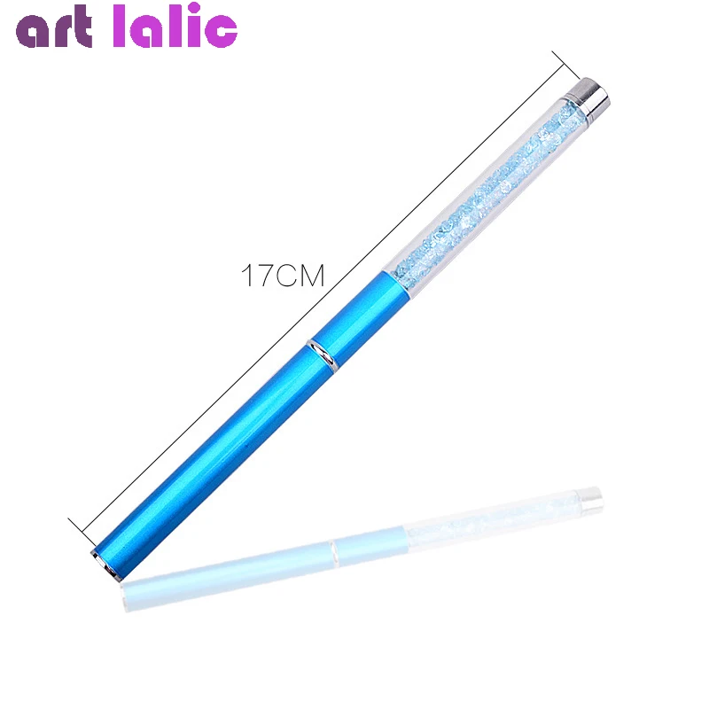 Кисти для маникюра, дизайн ногтей, ручка с кисточкой стразы, с алмазной металлической акриловой ручкой, для гравировки порошка, жидкого геля, салона, с колпачком