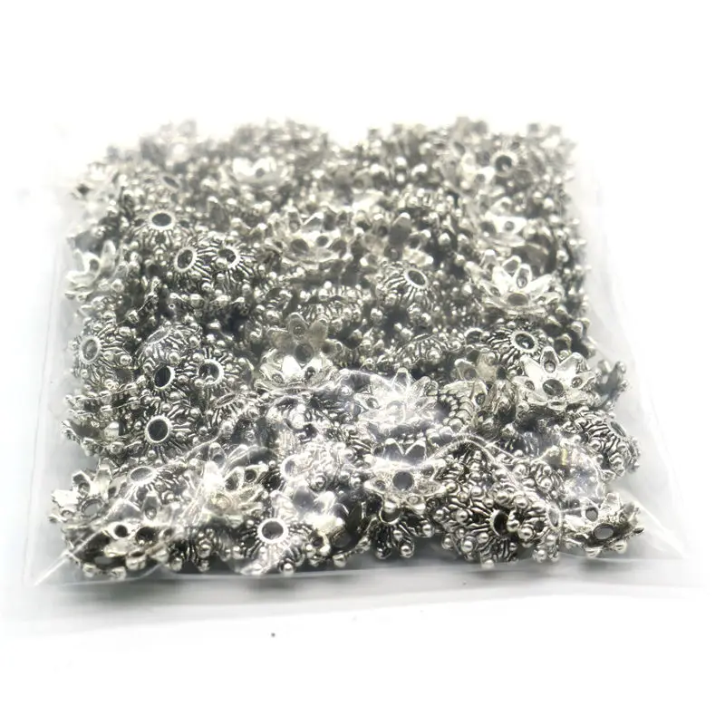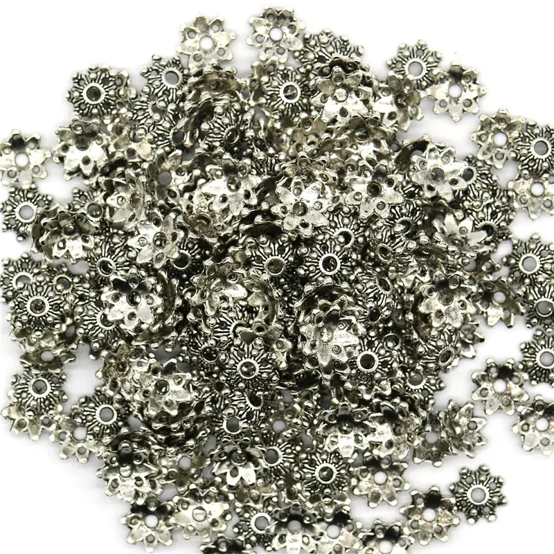 8 мм 100 шт.лот металлические шарики из цинкового сплава Тибетский посеребренный цветок торцевые шарики шармы для изготовления ювелирных изделий (yiwu)