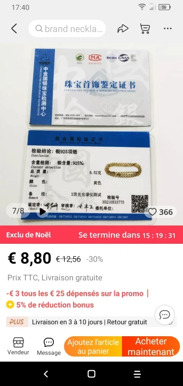 Страна: FR Length: 60cm Доставка: Standard Shipping 21.12.2022