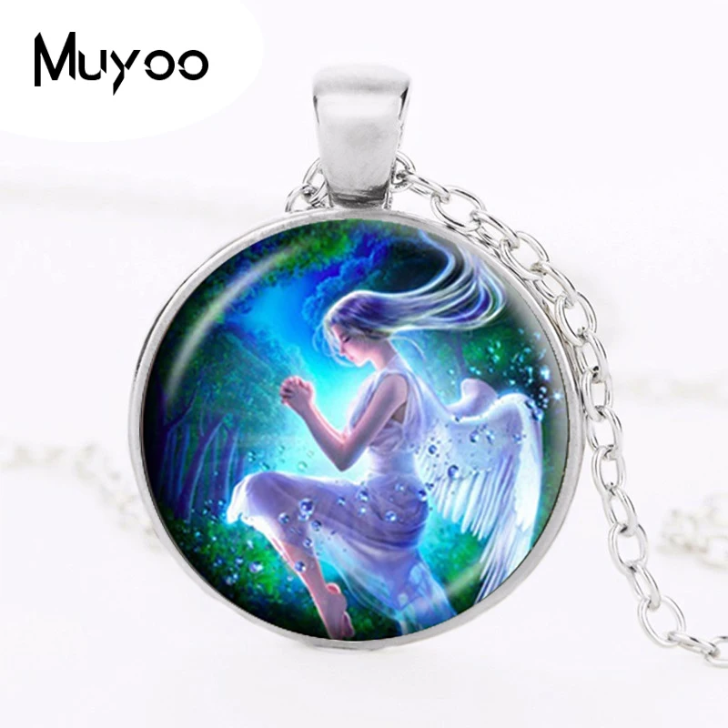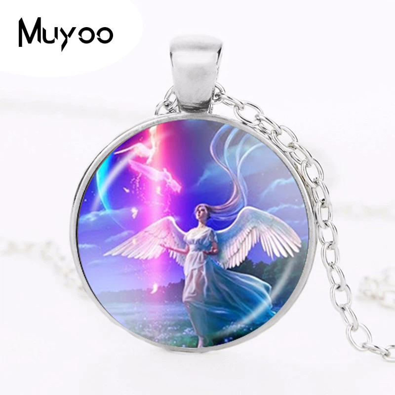 Ожерелье с крылатым ангелом, сказочное очаровательное ювелирное изделие, стеклянный кабошон, кулон, модная массивная Длинная цепочка, ожерелье, аксессуары для девушек HZ1 icon star icon star icon star icon star icon star
