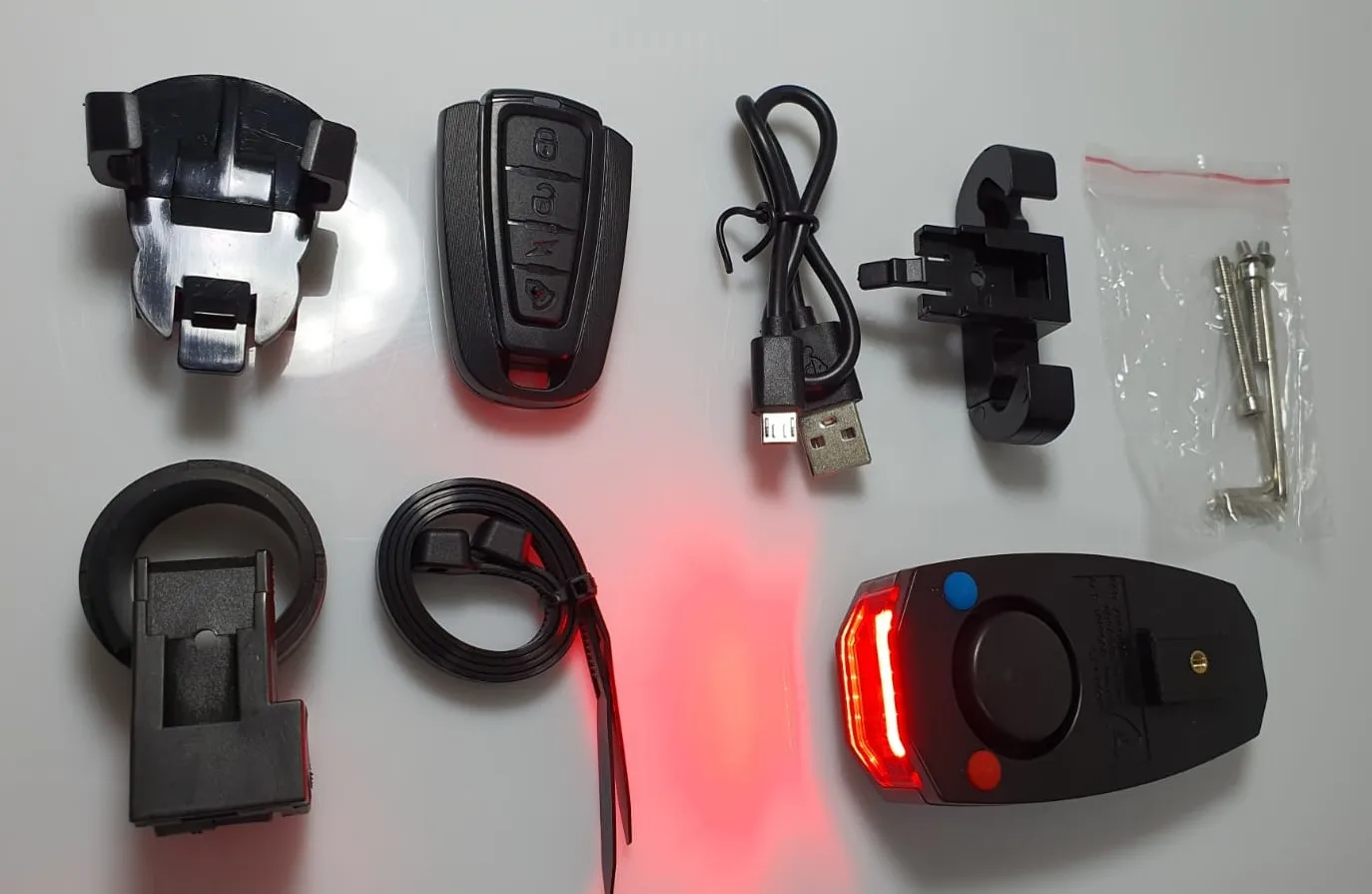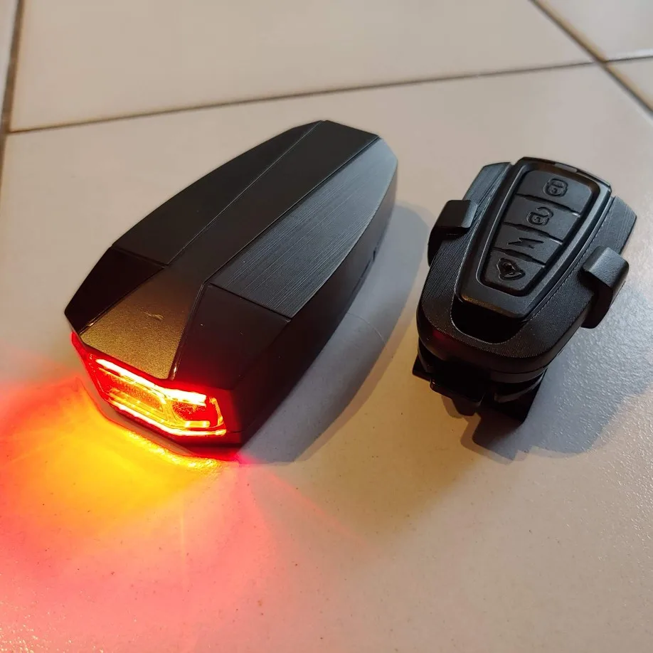 клевая штука. И фонарь задний, и сигнализация, и дудка. Я доволен, разместил под сиденьем компактно, вырвать не так просто. Срабатывает от легкого прикосновения.