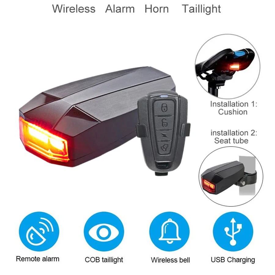 Беспроводной электрический велосипедный звонок, велосипедная сигнальная светильник, велосипедный задний фсветильник рь, светодиодный Противоугонный фонарь, Аксессуары для велосипеда