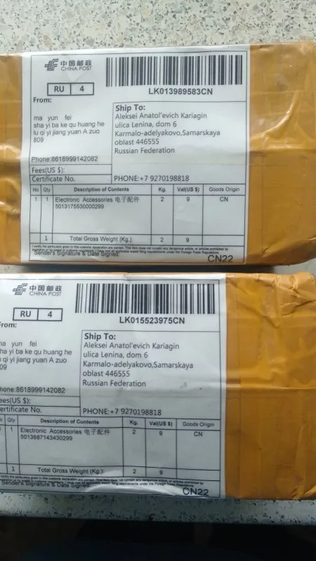 Страна: KZ Доставка: China Post Registered Air Mail 02.11.2021