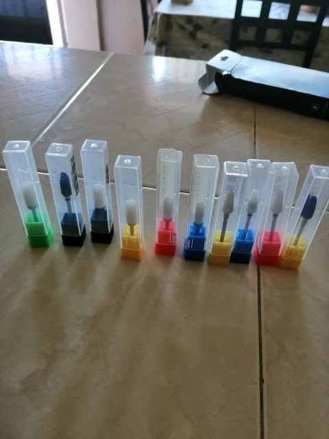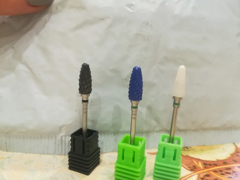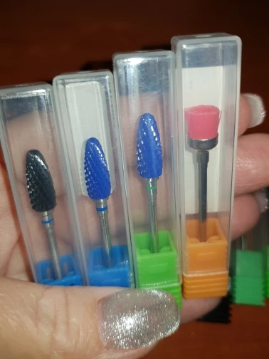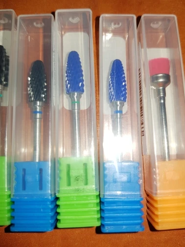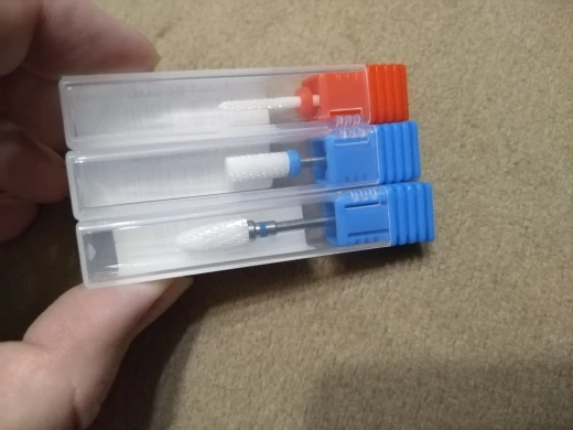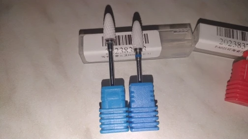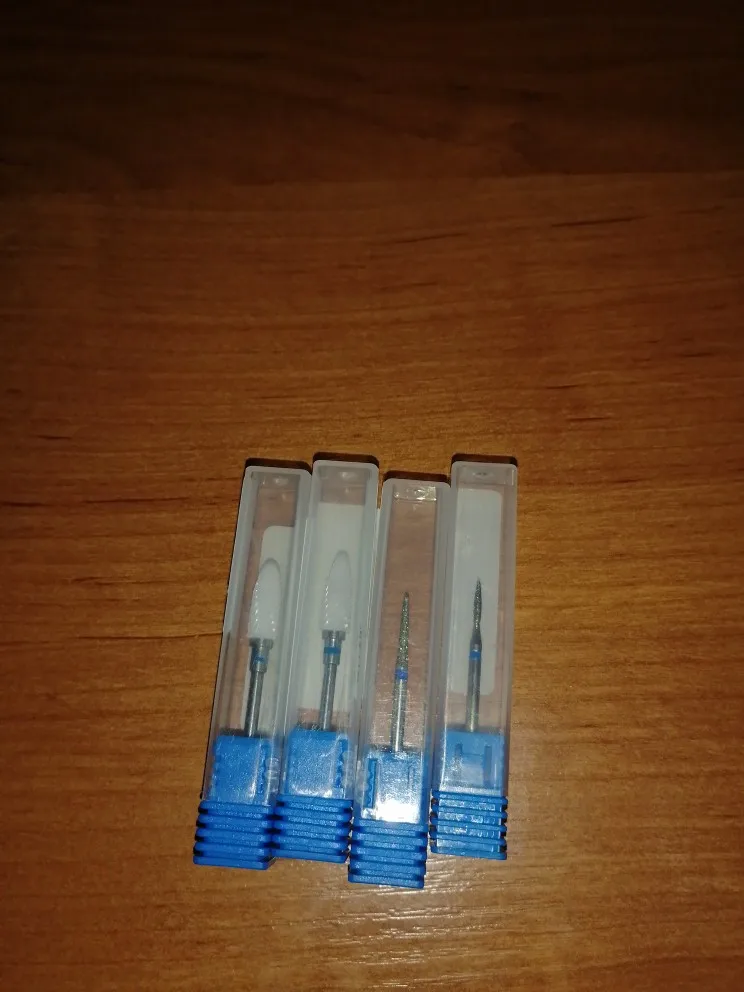 Фрезы шли долго, около 2 месяцев. Но я покупала их с очень большой скидкой, так что время доставки было не важно. На вид фрезы очень качественно сделаны. Синюю фрезу опробовала сразу. Очень понравилась для снятия нарощенных ногтей. Снимает очень быстро, работать нужно аккуратно. У меня уже была такая кукурузка с синей насечкой. И они отличаются. На фото слева моя старая фреза, справа новая. У старой лезвия на керамике длиннее, чем у новой. Старая снимает за одно движение слой в два раза меньше, чем новая. Возможно мне так кажется, возможно старая фреза уже затупилась. Красную еще не использовала, но думаю тоже будет отлично работать. Я очень довольна!