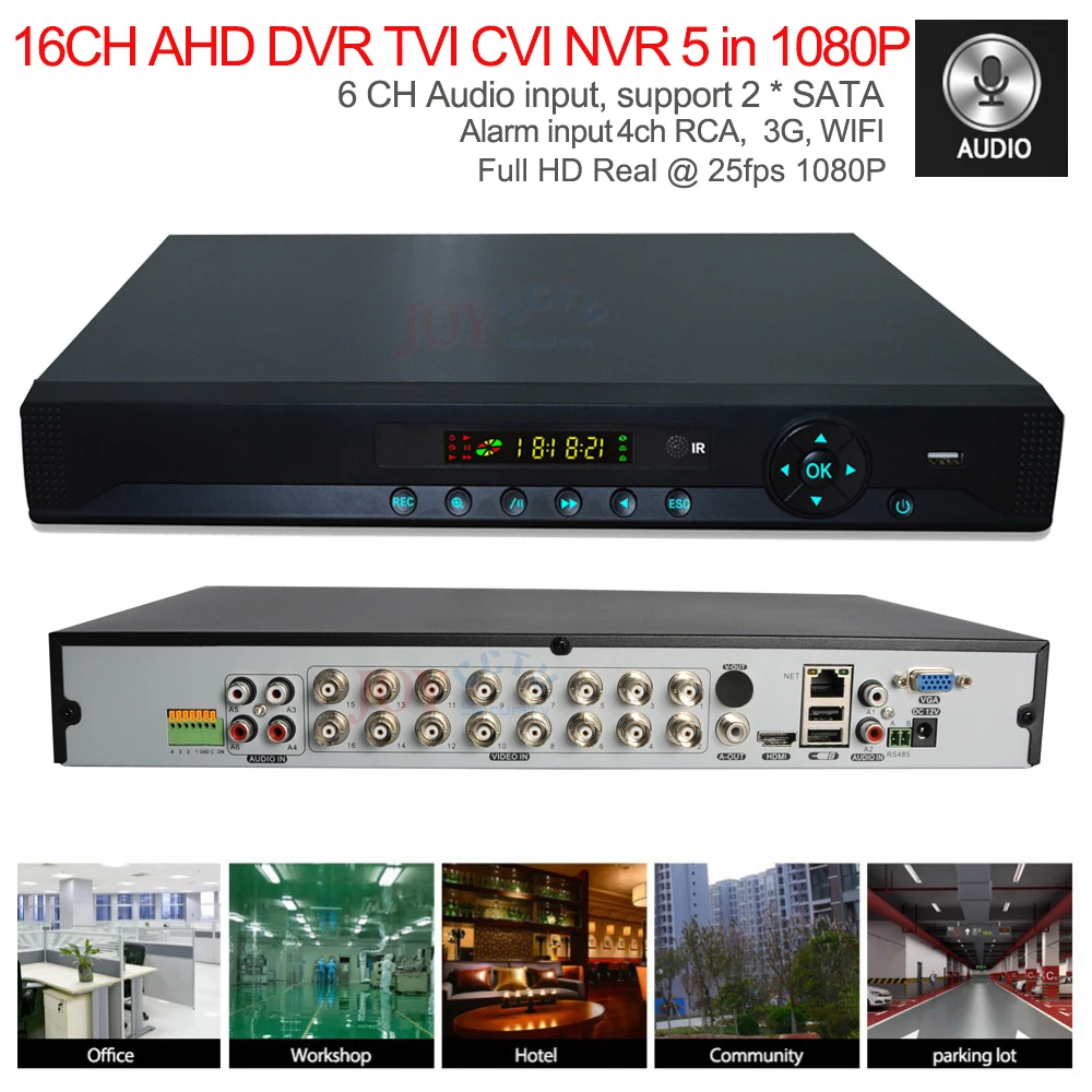 16CH AHD 1080P / 1080N/ 960P/ 720P поддержка системы DVR: AHD / TVI/ CVI /NVR / HVR 5 в 1