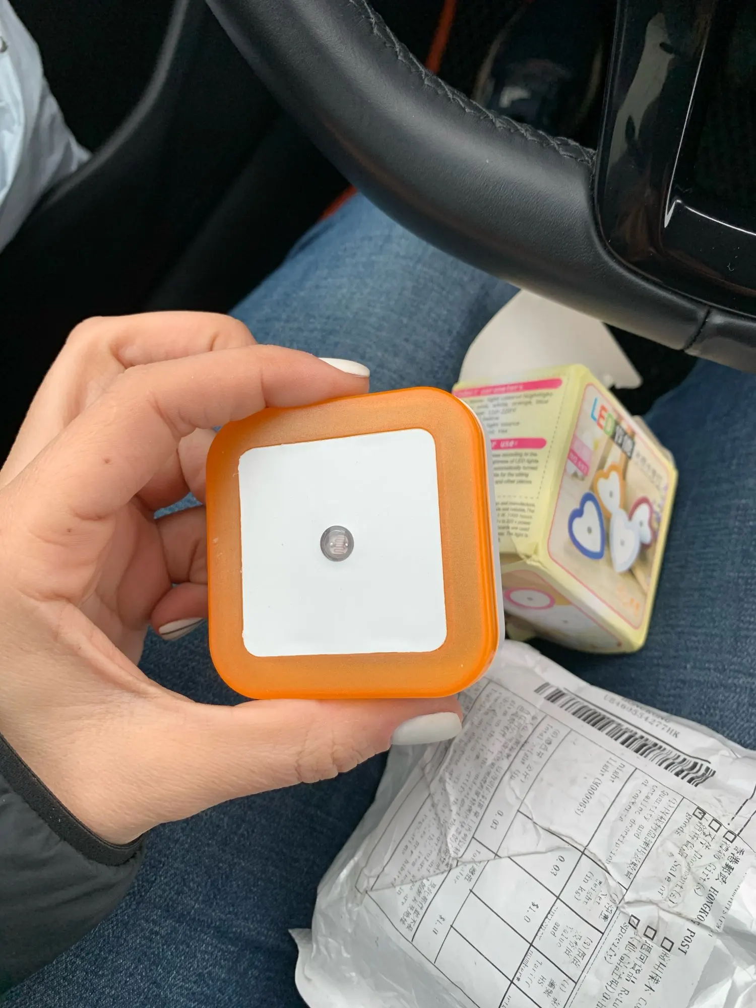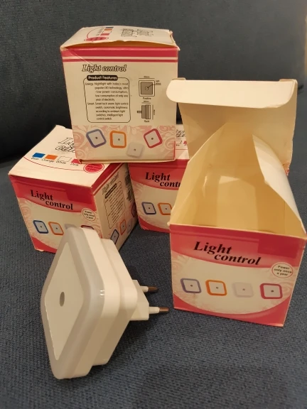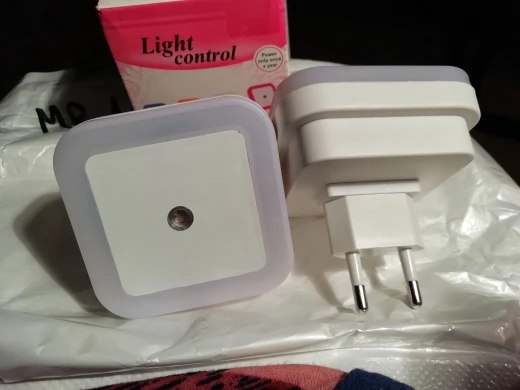 Светильник пришёл в ужасно почтой коробке, будто по ней ходили и писали от самого Китая до России. Но устройство без повреждений, что удивительно. Работает по датчику освещения. Свет холодный, приглушённый. Отличный ночник.