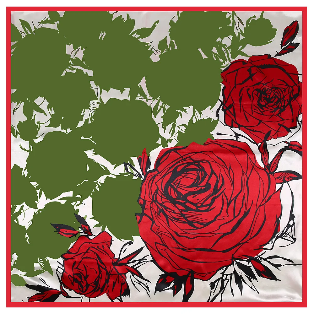 Шарф женский Шелковый квадратный, 90 на 90 см, с зеленым деревом