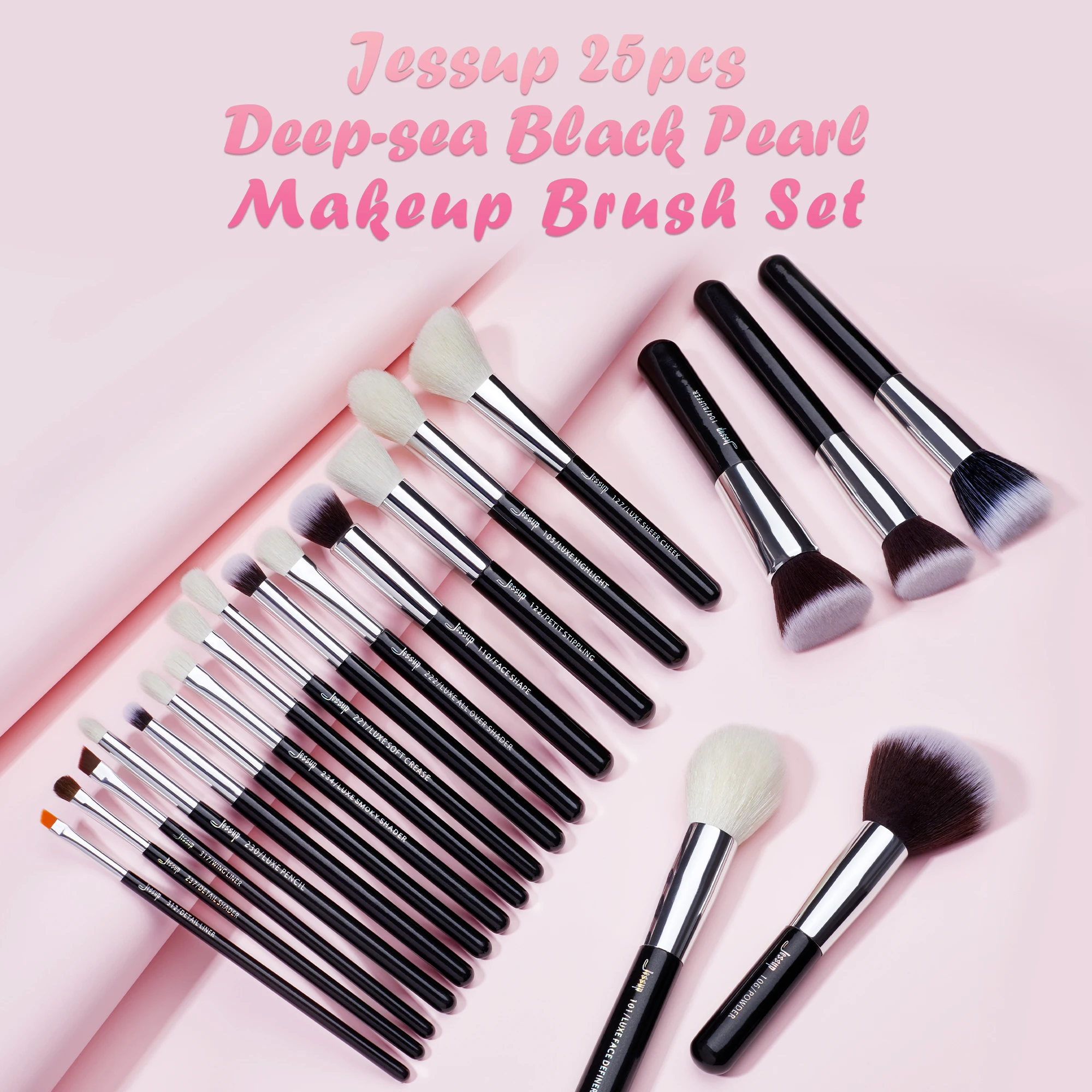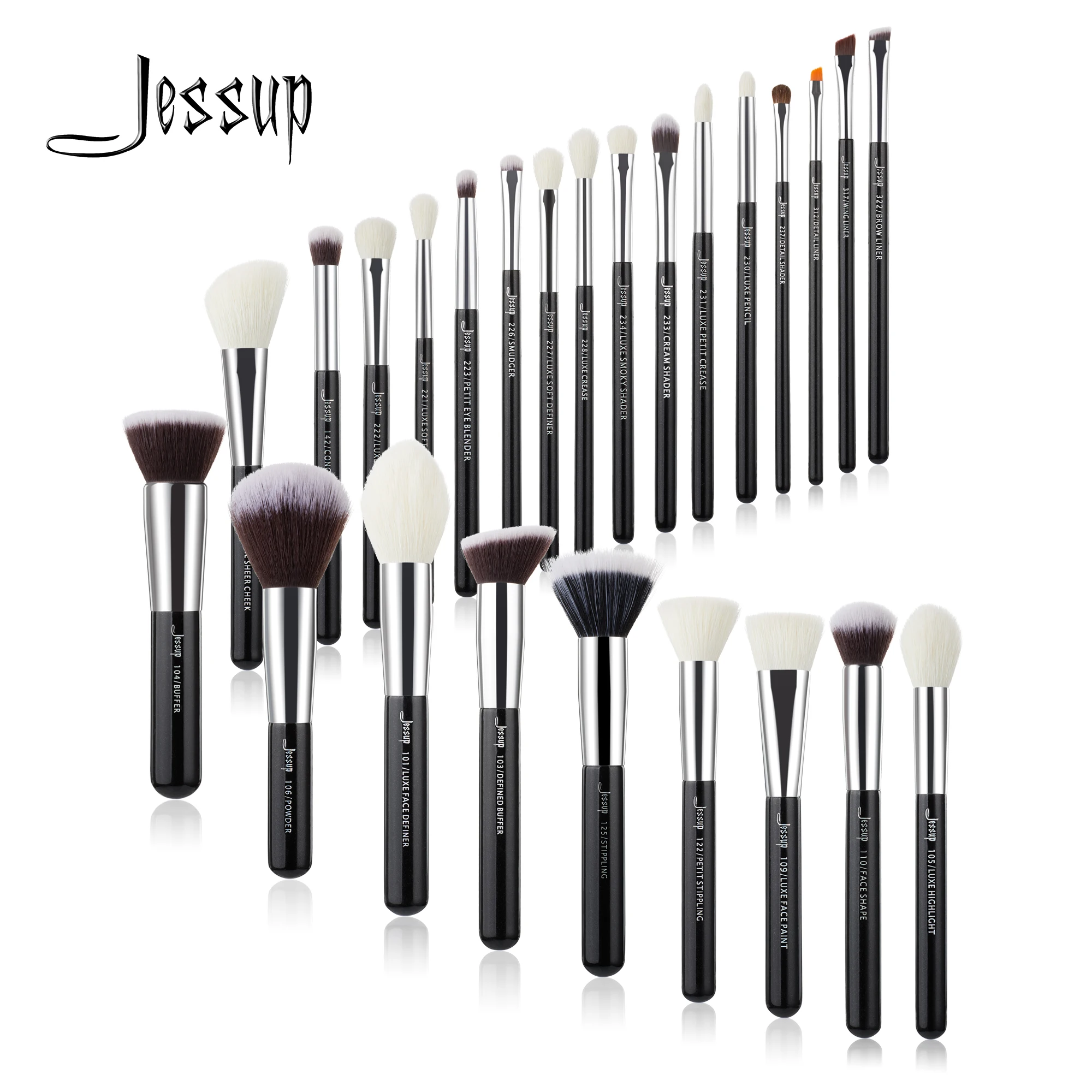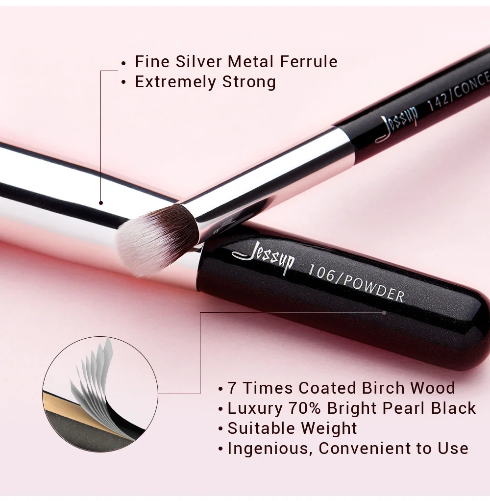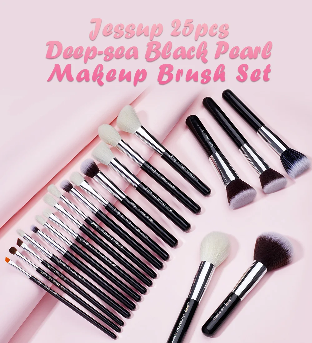 Jessup 25шт Профессиональный набор кистей для макияжа Косметический набор для невнесения основы под макияж Кисть для ресниц Кисть для губной помады Кисти из натурально-синтетических волос