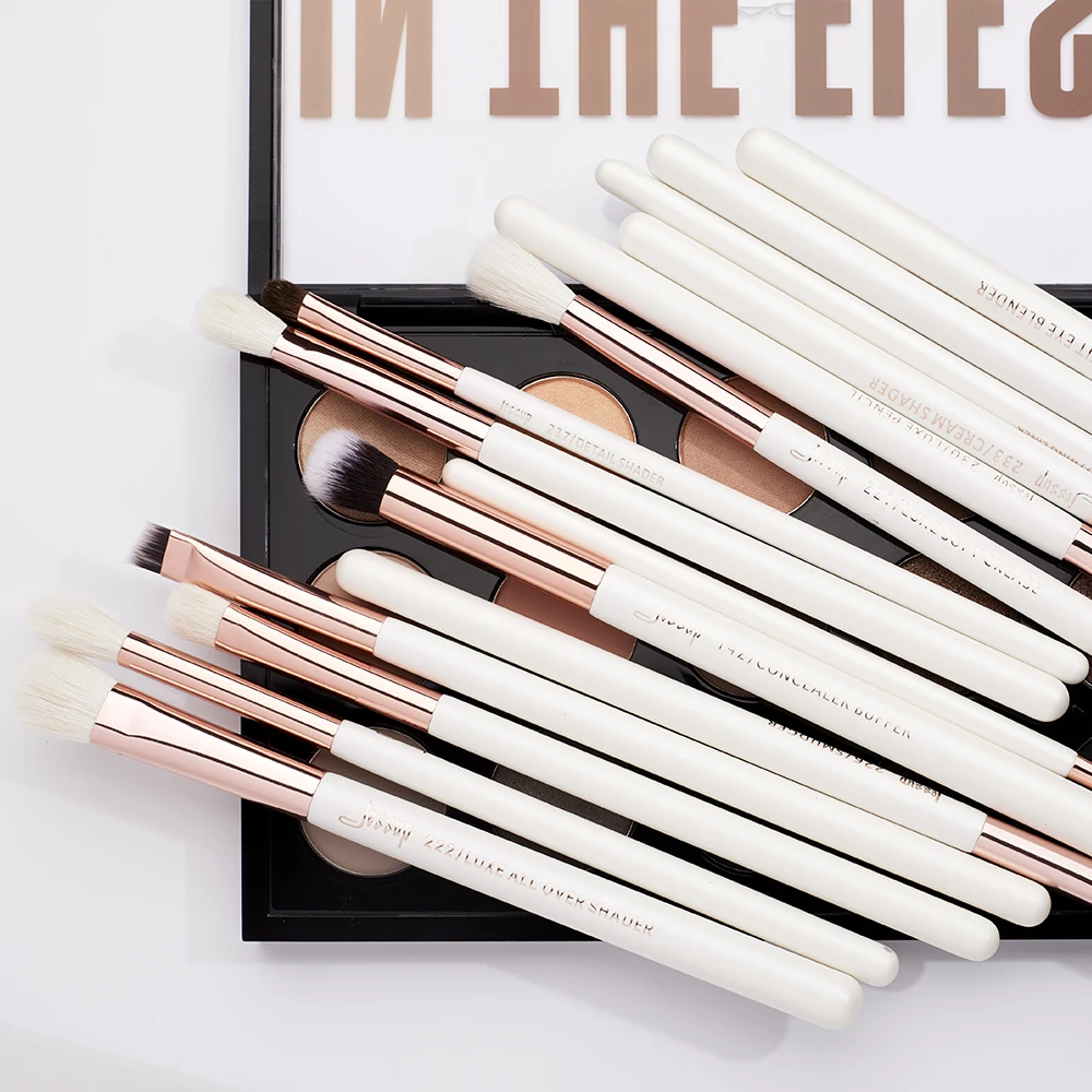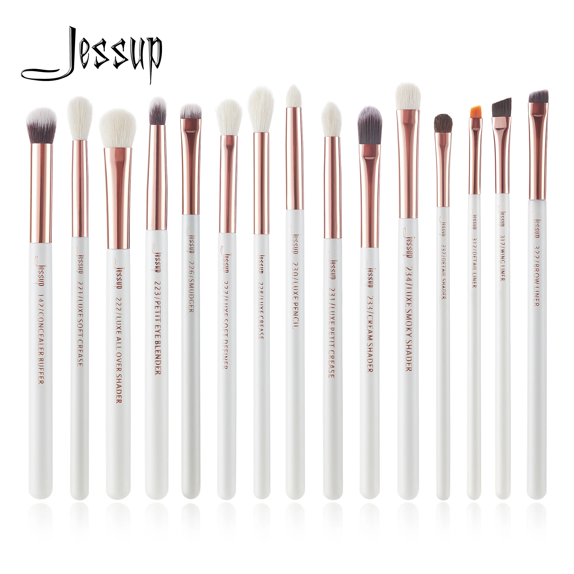 Jessup Профессиональный набор кистей для макияжа Набор кистей Подводка для глаз Тени для век 15шт Жемчужно-белыйрозовое золото