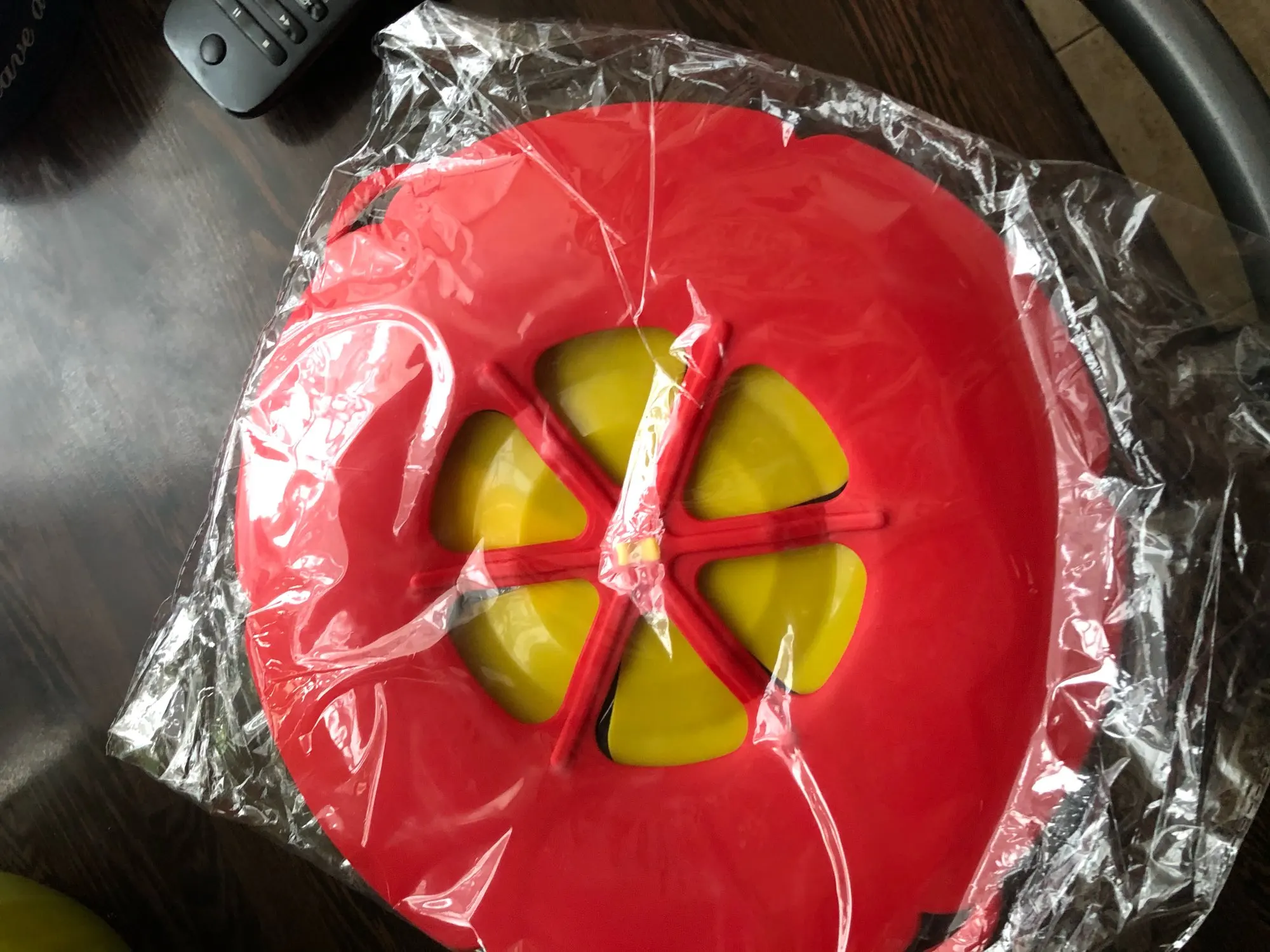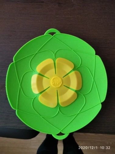 Товар соответствует описанию. Яркая крышка, подходит для всех моих кастрюль. В действии не пробовала пока. Надеюсь оправдает мои ожидания, и суп не будет перекидываться через край кастрюли, с электроплитой это часто случается. Получила крышку быстро, за две недели дошла до Нидерландов. Спасибо продавцу!