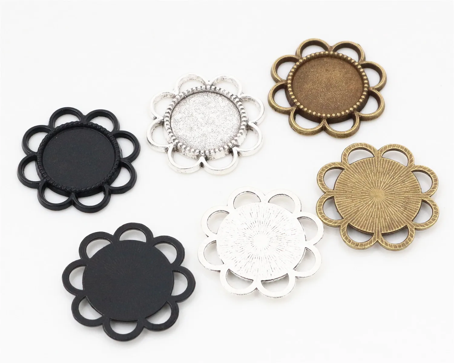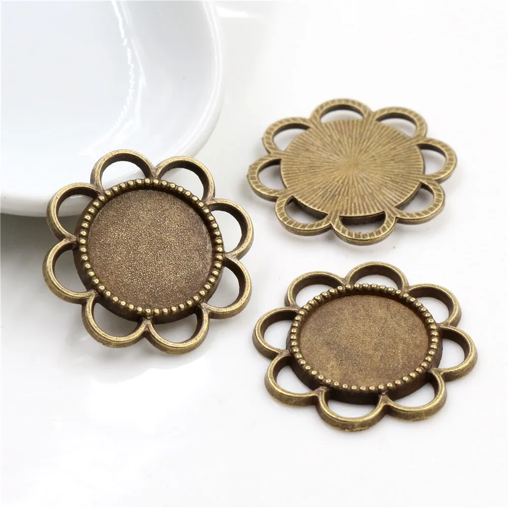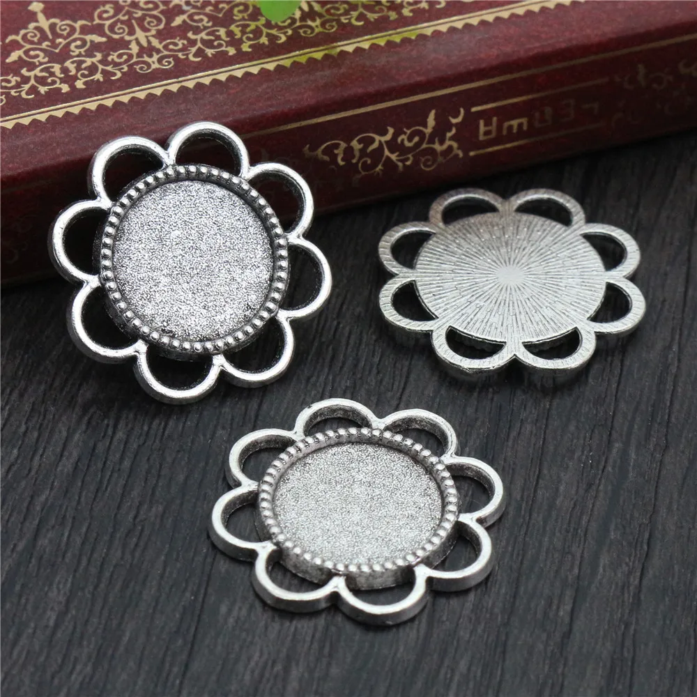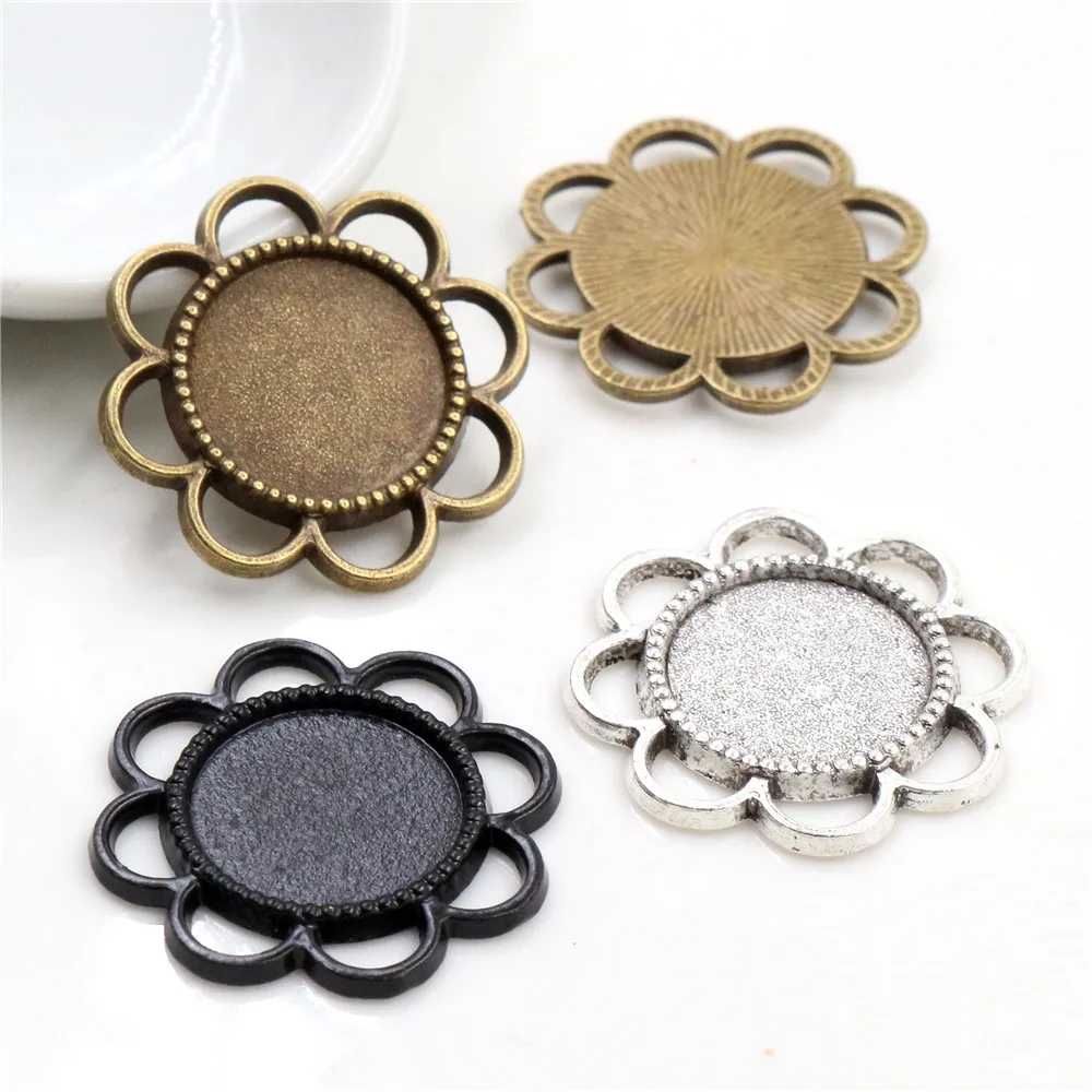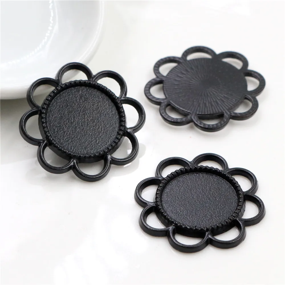 15 шт 14 мм внутренний размер античная бронза Посеребренная, черный цветок стиль кабошон базовая Камея Подвеска Подвески