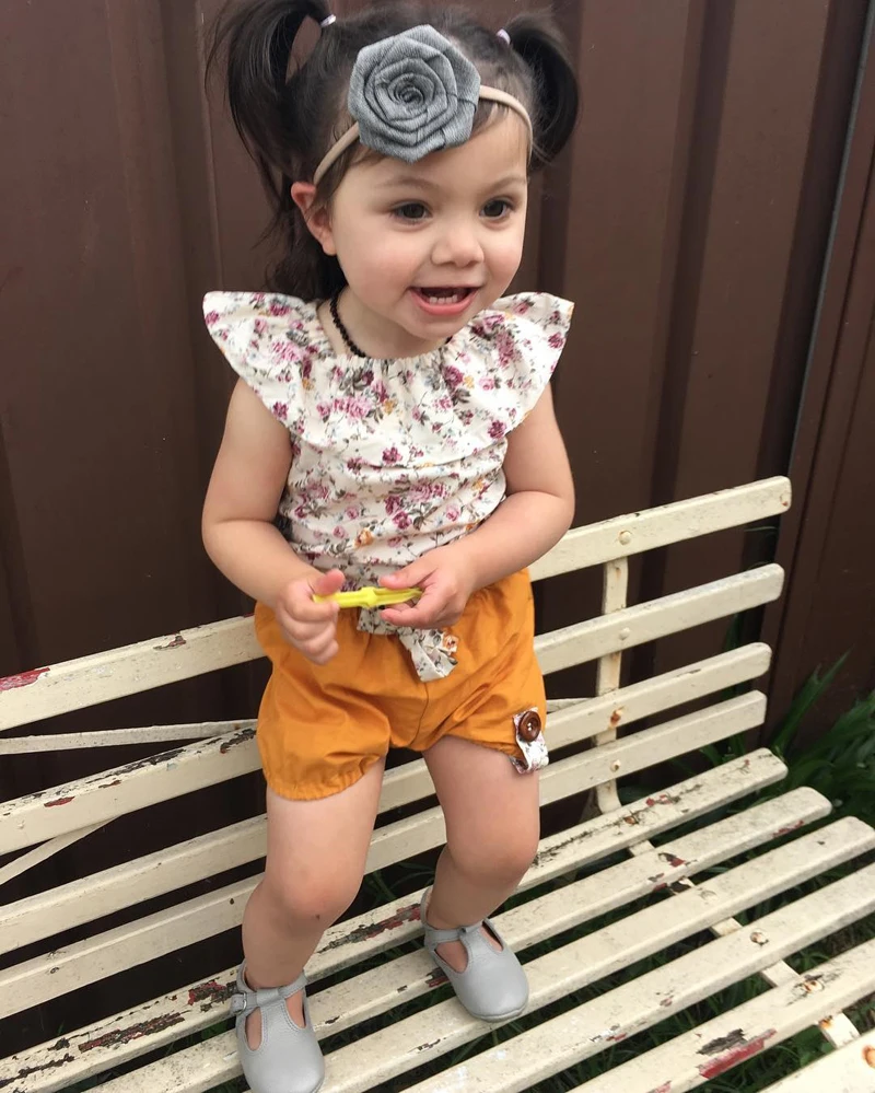 Комплект из 2 предметов для маленьких девочек; Топ с цветочным рисунком + шорты; Комплекты