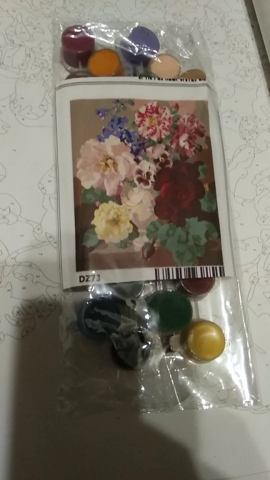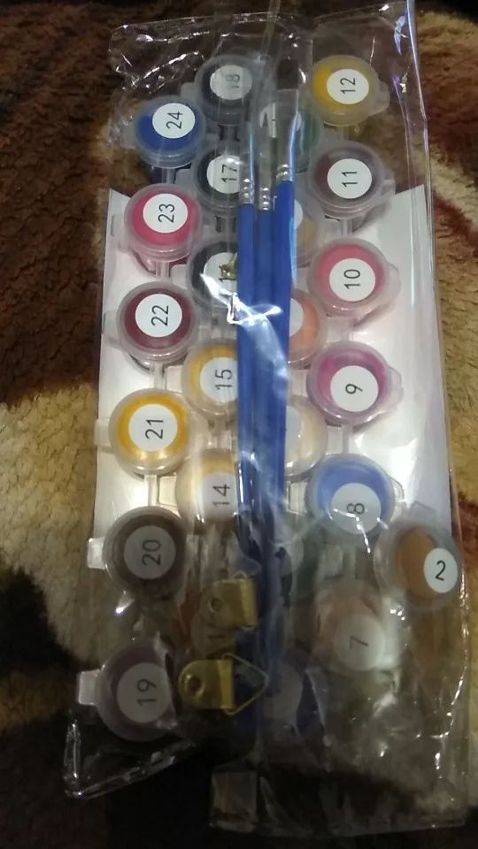 Получила, все в комплекте, кроме проверочного листа. Но он здесь необязателен - сегменты достаточно крупные. Холст хороший, белый, разметка четкая. (немного мятый, но можно прогладить утюгом, не страшно.) Краски свежие, 24 тубуса. Доставка в Питер месяц. с отслеживанием трека. За такие деньги просто подарок! Думаю, получится красивая, яркая картина. Большое спасибо!