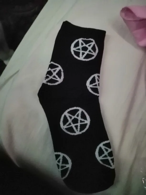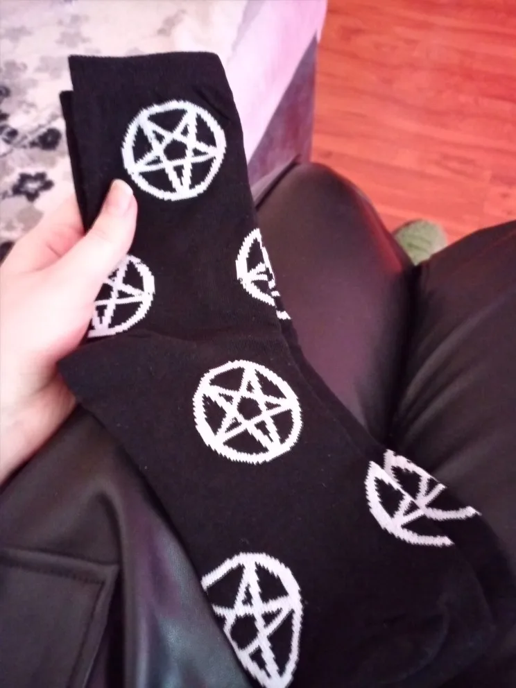 Очень нравятся эти носки, хорошее качество, быстрая доставка, идеально подходит для завершения моей готической оккультной одежды