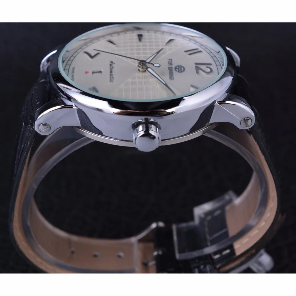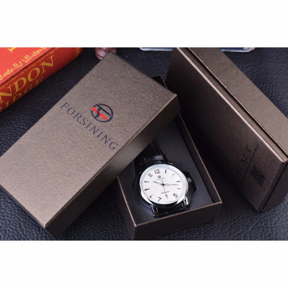 Мужские деловые часы Forsining, классические часы с белым циферблатом и календарем, автоматические часы