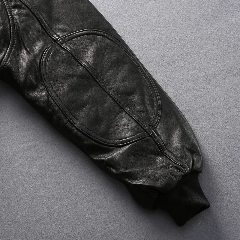 Куртка-бомбер мужская из натуральной кожи, с меховым воротником