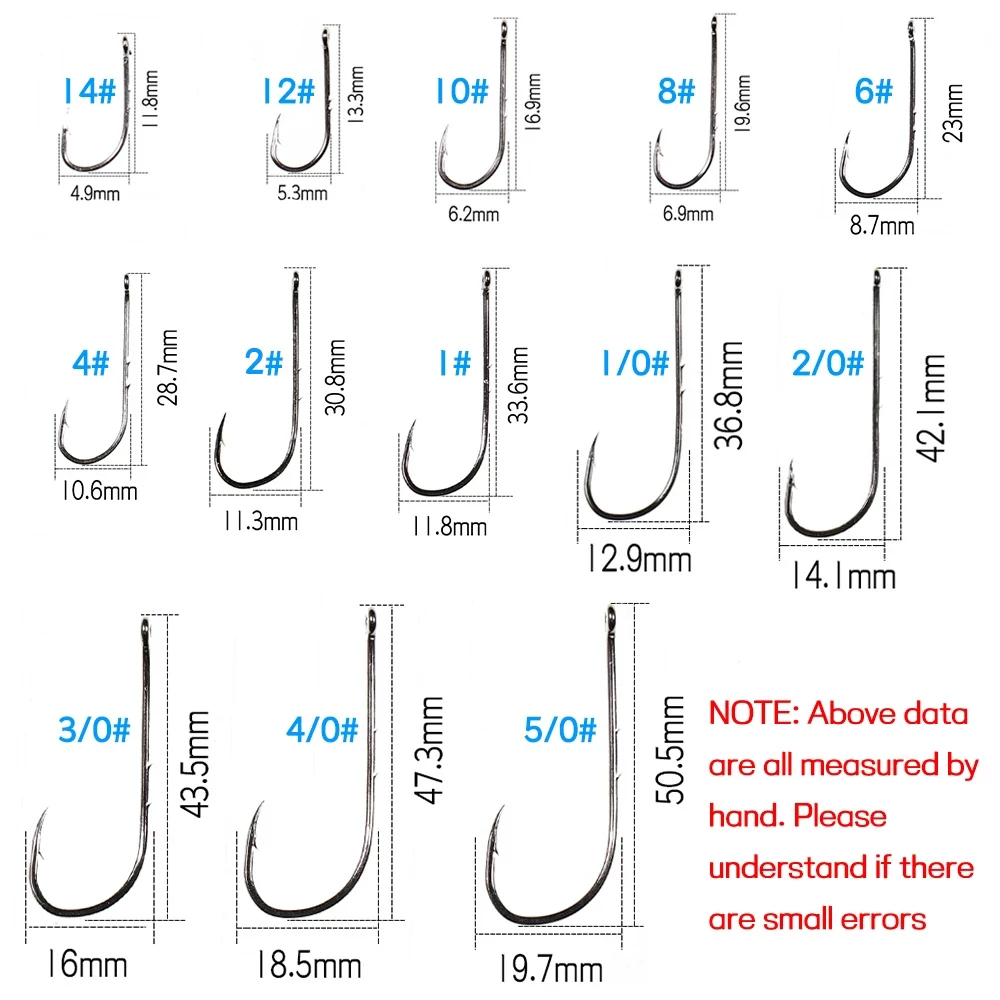 Крючок рыболовный из высокоуглеродистой стали, с зазубринами, Размер 10, 12, 14, 10, 20, 30, 40, 50, 50 шт.