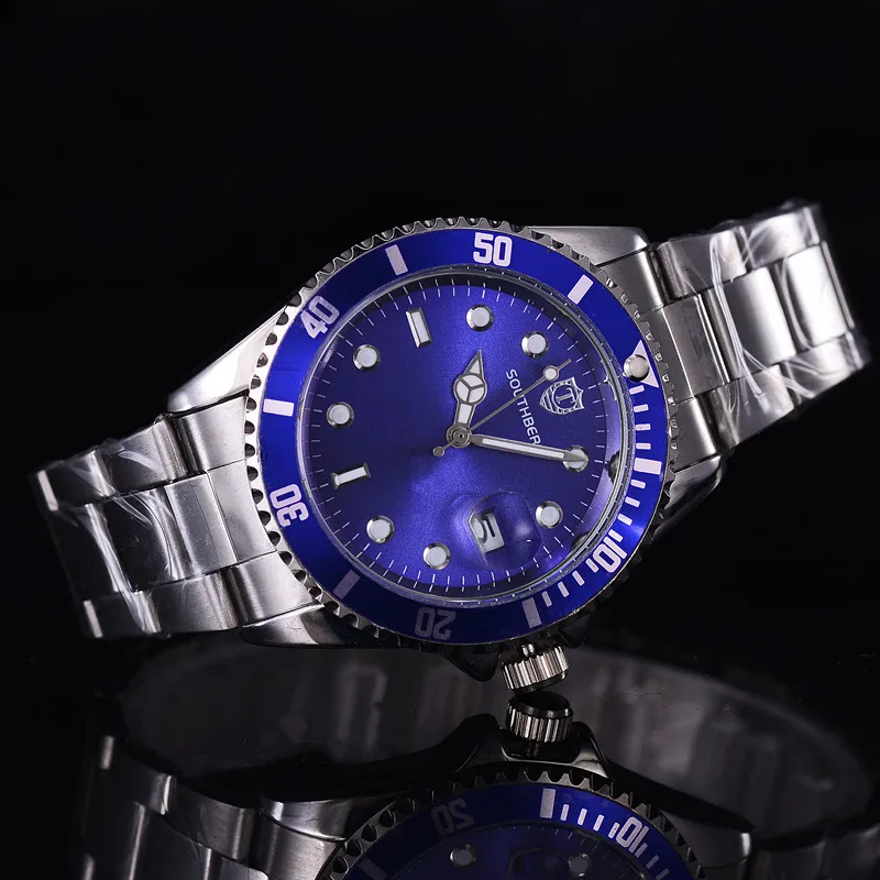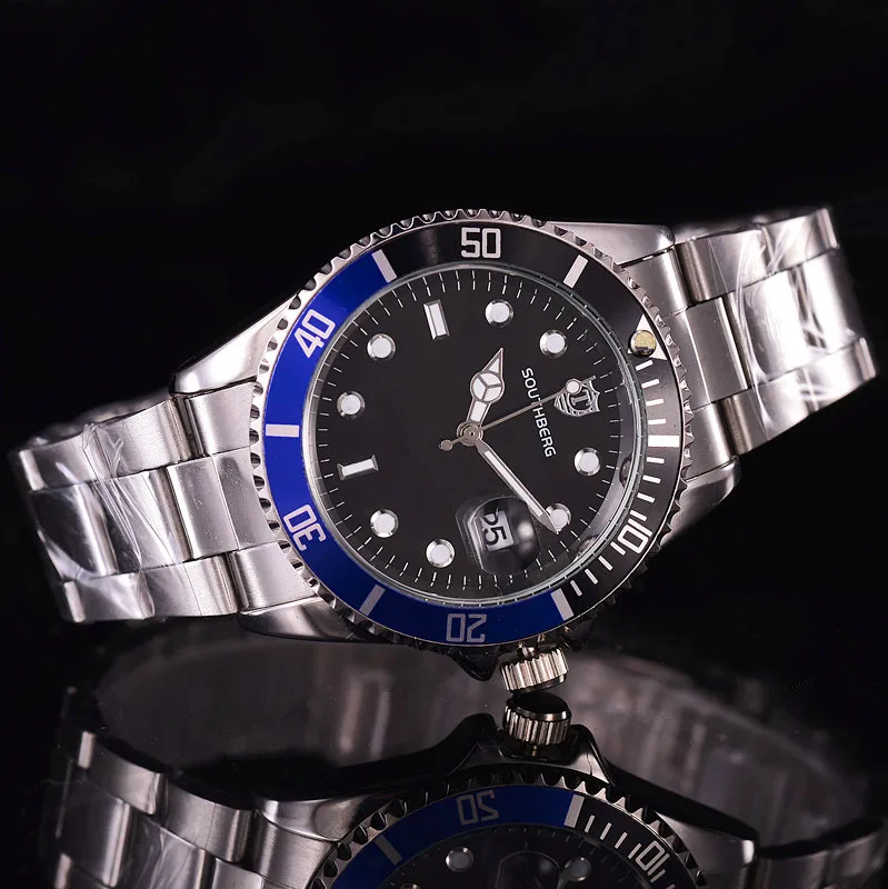 2017 2016 роскошные ролевые модные мужские часы, кварцевые Стальные зеленые наручные часы ведущей марки саутберга для мужчин, мужские часы