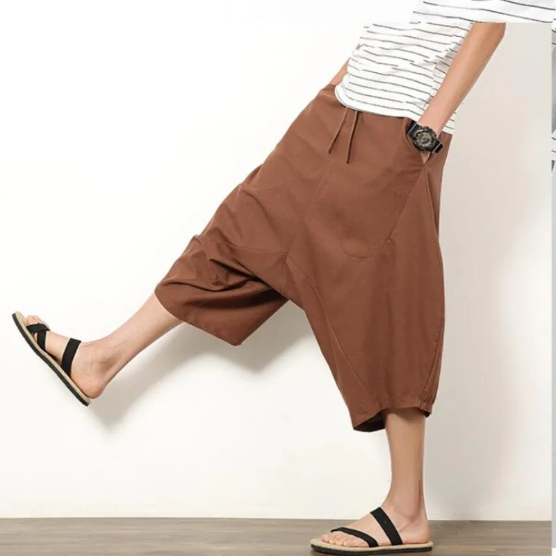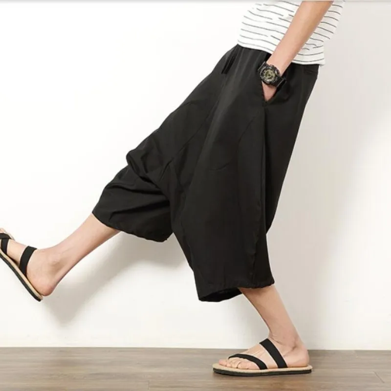 Летние мужские шорты-шаровары в стиле японского самурайского бохо, летние свободные шорты Hakama штаны из льна и хлопка, 5 цветов, большие размеры