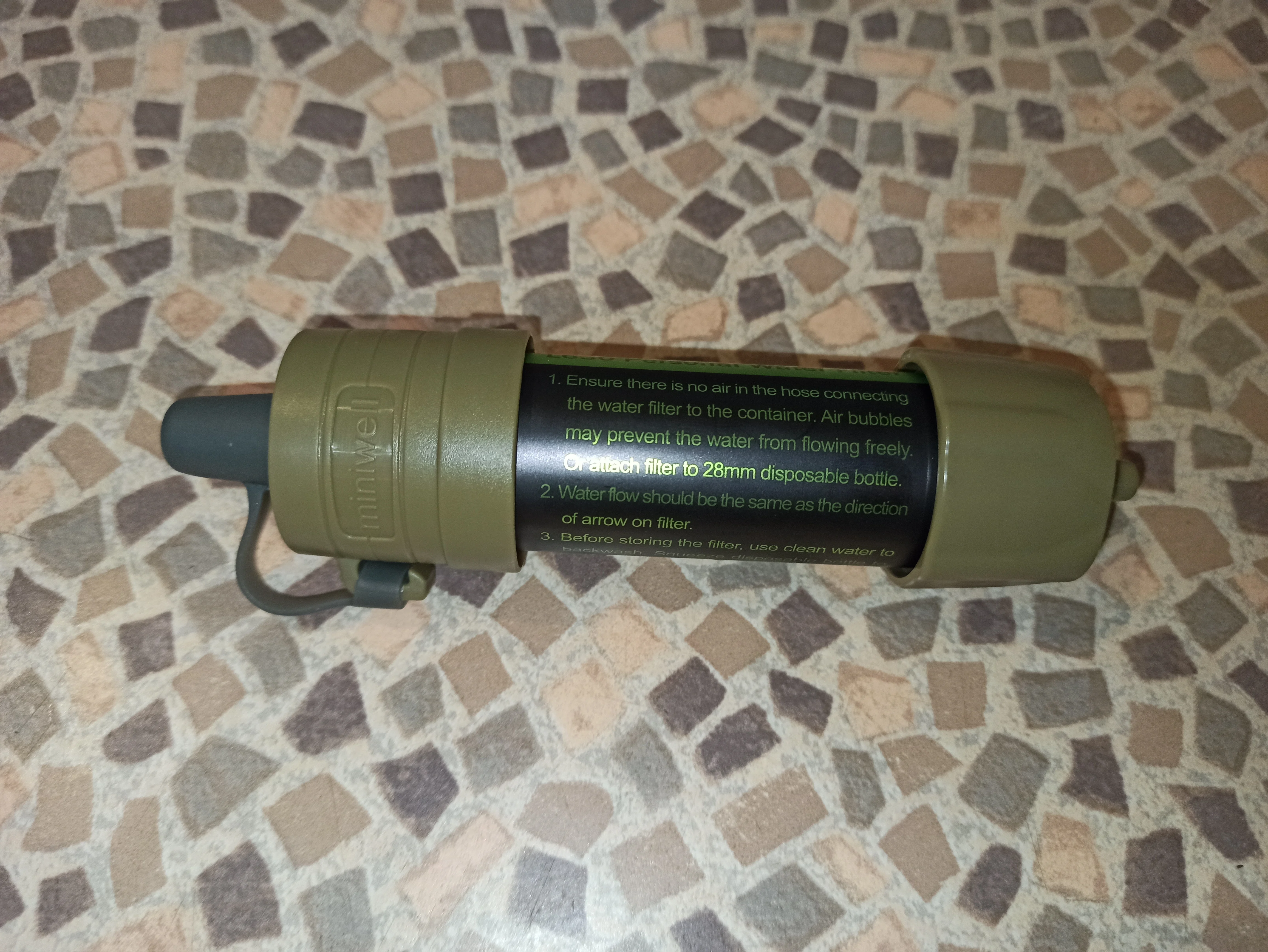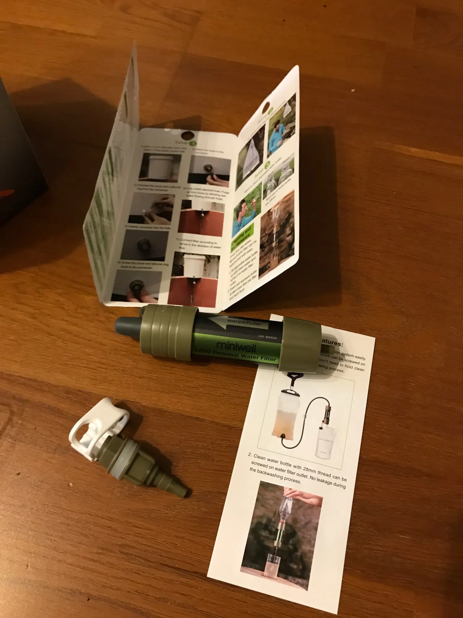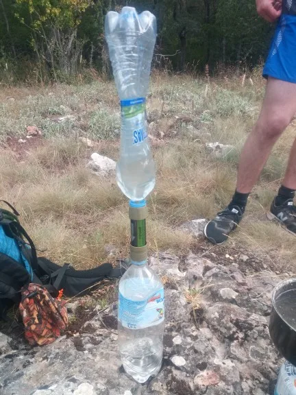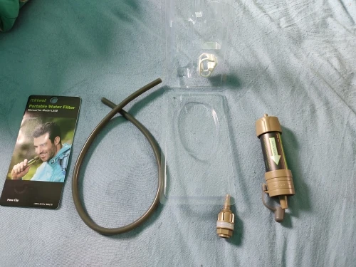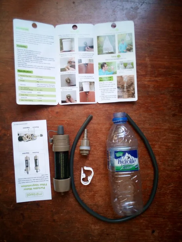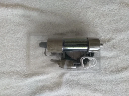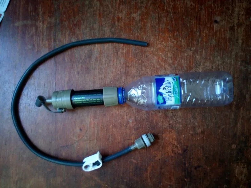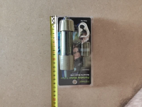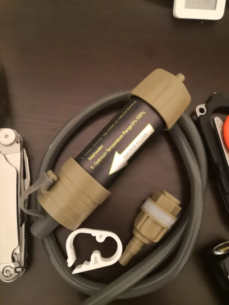 Фильтр рабочий, фильует медленно, словно бытовой в кувшине. новый дизайн фланцев: Бутылку можно подсоединить с обоих сторон, что важно для промывки чистой водой после использования. Вещь must have, неоднократно жалел, что у меня такой нет, стоя несколько дней на озере или реке.