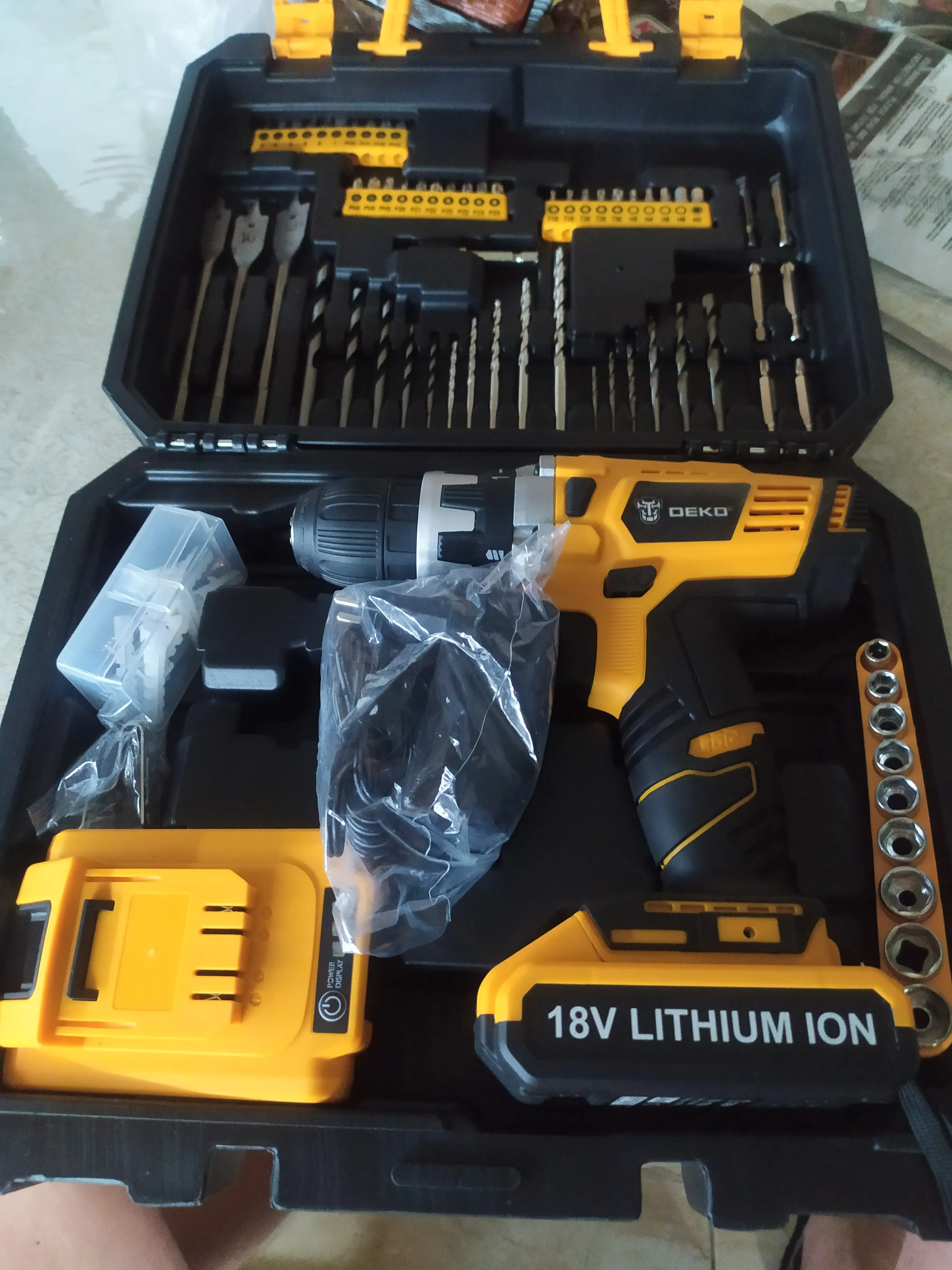 Прочный мощный литий-ионный аккумулятор 1,5 Ач и зарядное устройство на 1 час; Сверла DEKO GCD18DU2 обеспечивают максимальный крутящий момент 38 Н · м