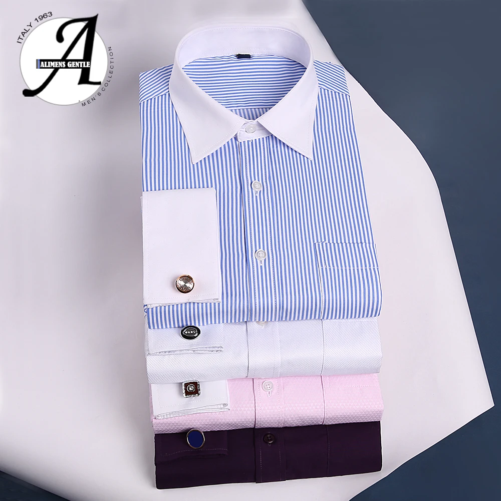 Мужская приталенная рубашка с длинным рукавом и французскими манжетами