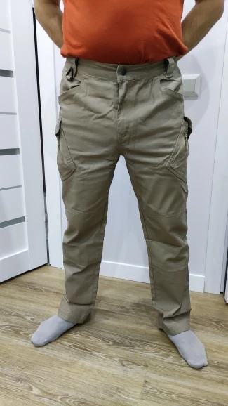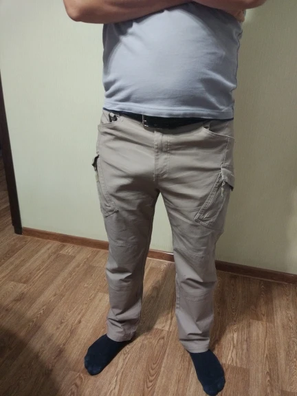 Брюки неплохие, в целом не подвели ожиданий. Смотрятся хорошо, дизайн весьма приличный, обилие и разнообразие карманов радует. Ткань с содержанием стрейча, но ощупь не очень приятная, но за счет того, что растягивается, может быть будет не так быстро изнашиваться. Есть опасения что тело будет потеть из-за такой ткани, посмотрим, как себя покажет.