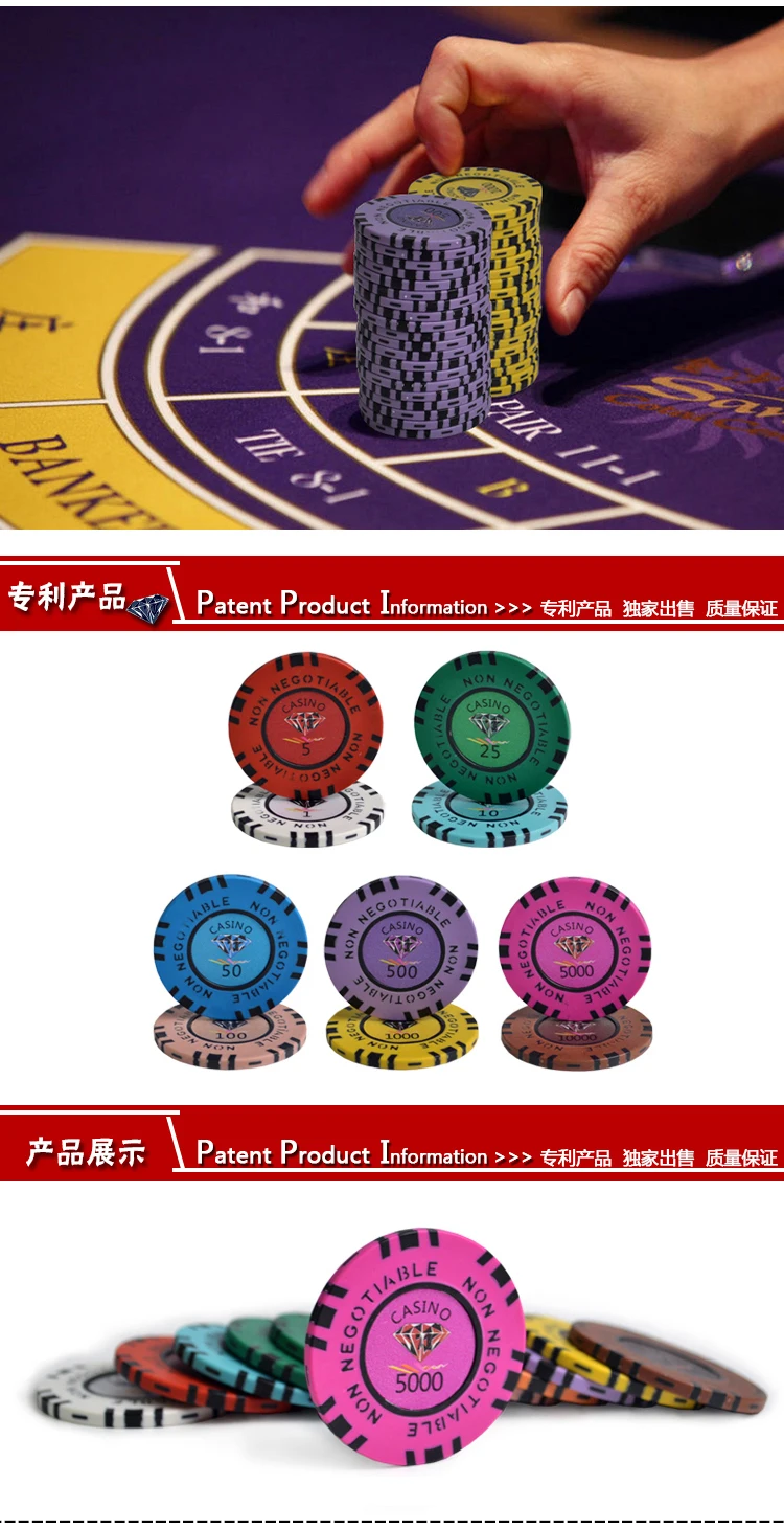 Наборы покерных фишек с алмазным покрытием, 25 шт.лот, 45 мм, для казино, Техасский Холдем, 13,5г, из глины, композитный, с внутренней металлической дешевой фишкой