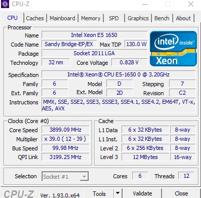 Процессор Intel Xeon E5 1650 LGA 2011, 3,2 ГГц, 6 ядер, кэш 12 МБ, SR0KZ, поддержка материнской платы X79