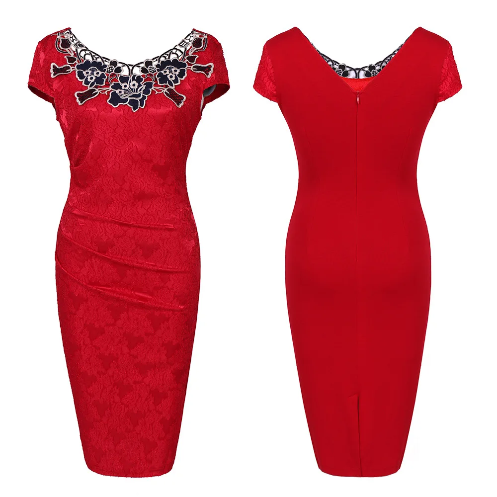 Женское кружевное платье-карандаш с коротким рукавом, красное или черное облегающее платье в стиле пэчворк, элегантное винтажное платье Вечерние, лето 2022