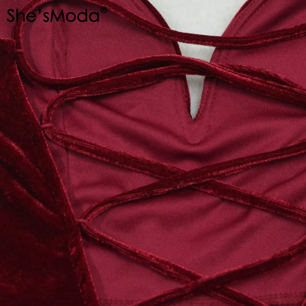 Сексуальное платье с глубоким v-образным вырезом, завернутый боди с закрытой грудью! Изготовлено из бархата с прочным спандексом, с открытой спиной и перекрестными ремешками. Облегающий крой подходит для тела. Прямые продажи с фабрики! В She'sModa вы получите оригинальный дизайн и качественную продукцию по разумной цене! Не упустите возможность! ^_^