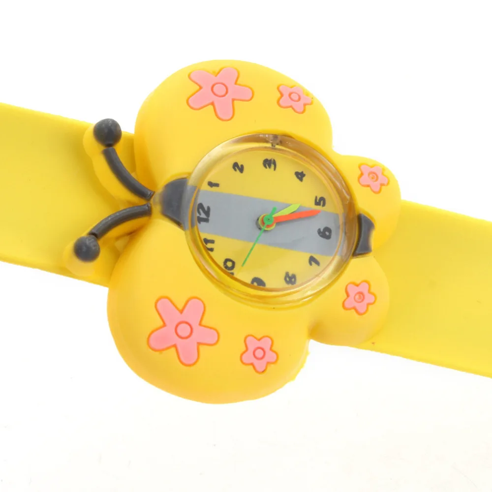 Детские цифровые часы Slap Watch с милыми мультяшными бабочками, Желтые часы с откидным кольцом, игрушки для студентов, подарок для детей и девочек