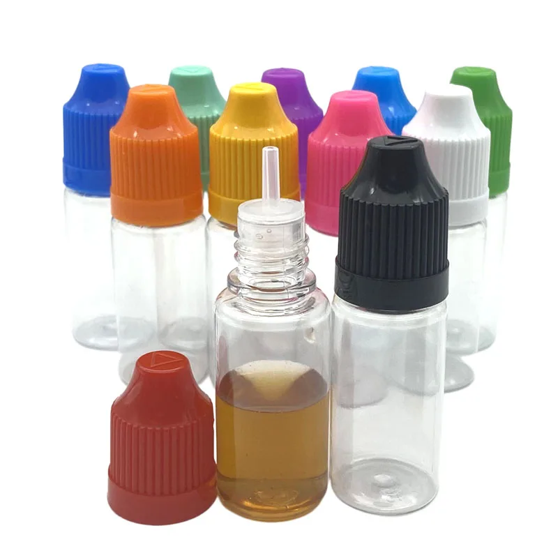 Пустая пластиковая бутылка-капельница для домашних животных объемом 10 мл с защитой от детей и длинный игольчатый наконечник для бутылочки для электронных жидкостей